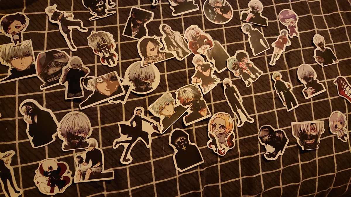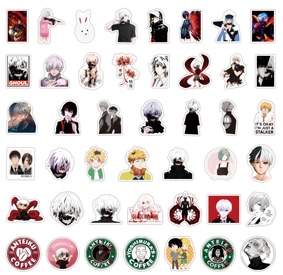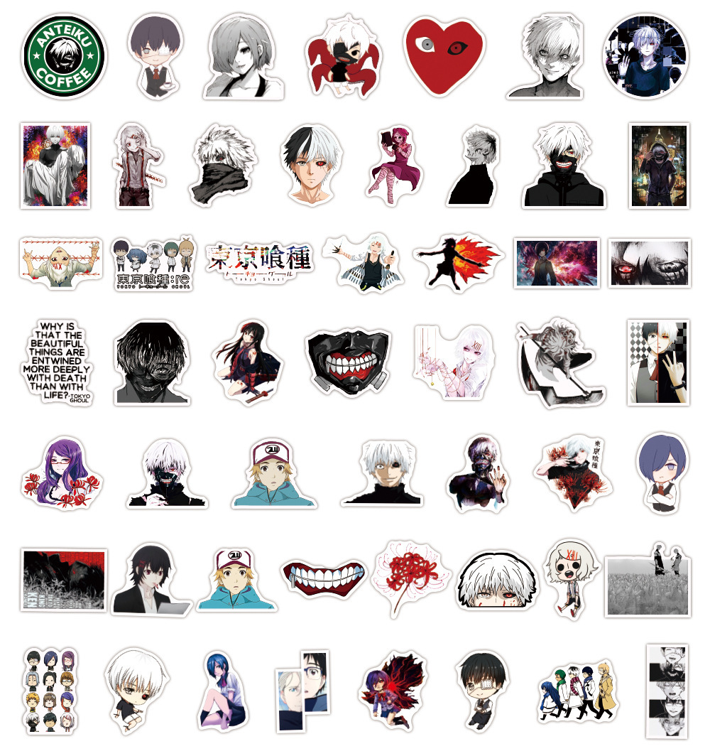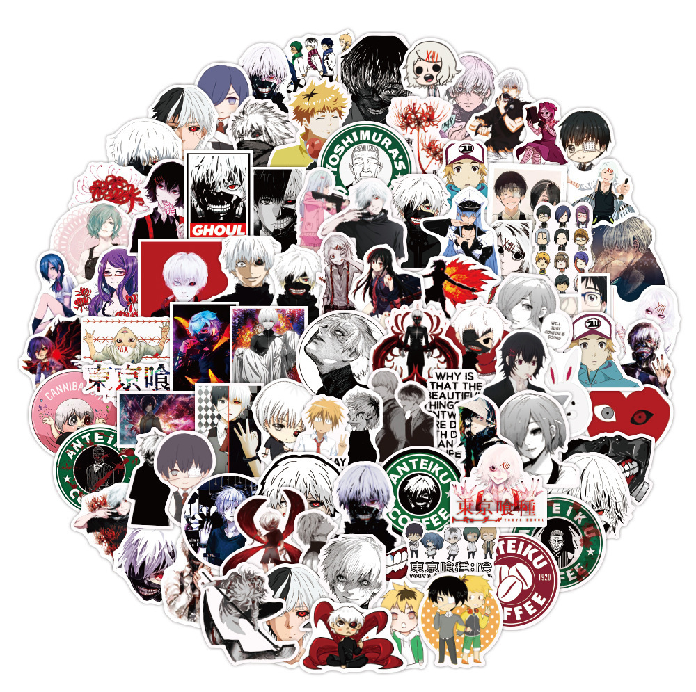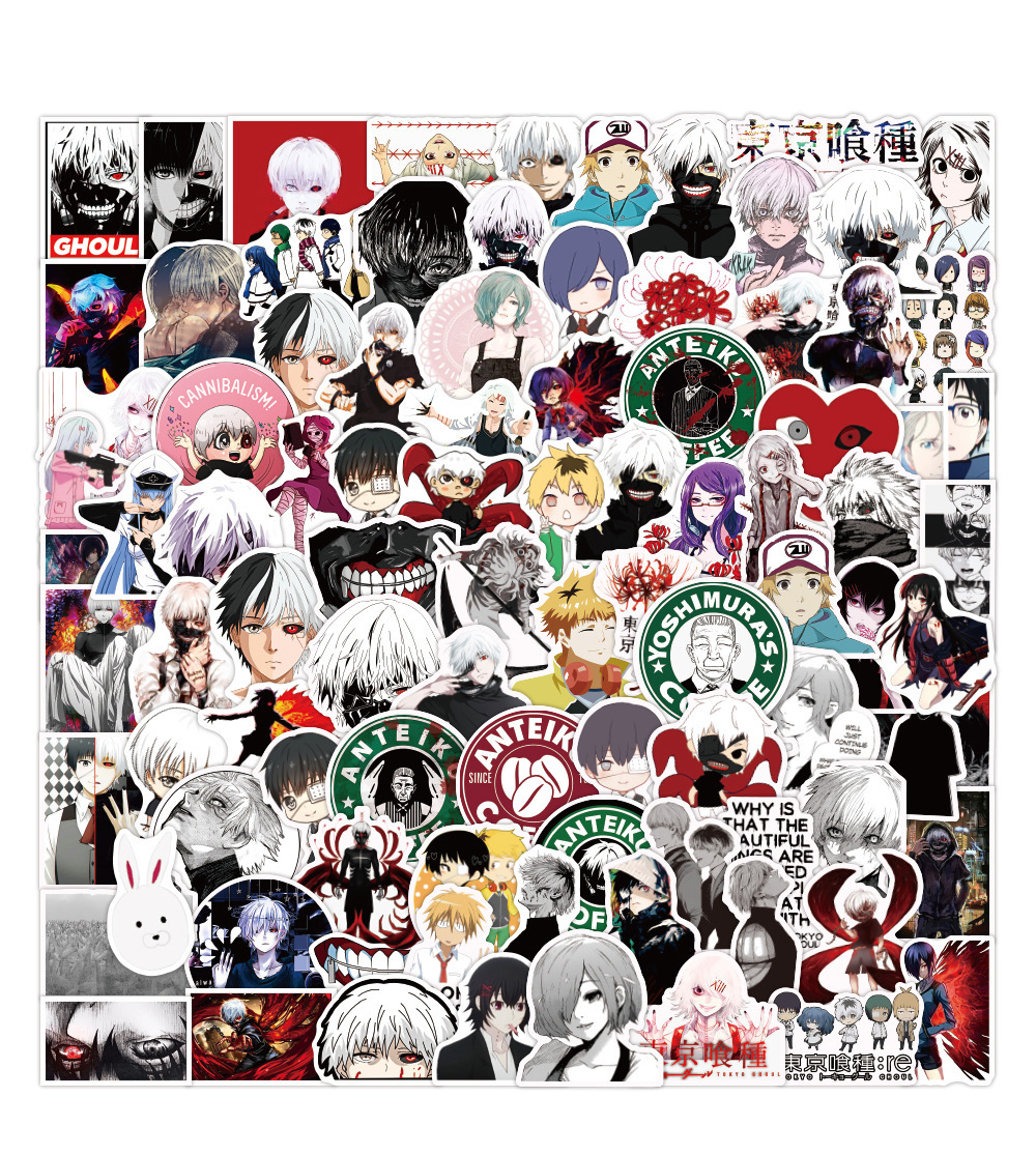 Наклейки Токийский Гуль / Tokyo Ghoul водостойкие 100шт (4-7см)