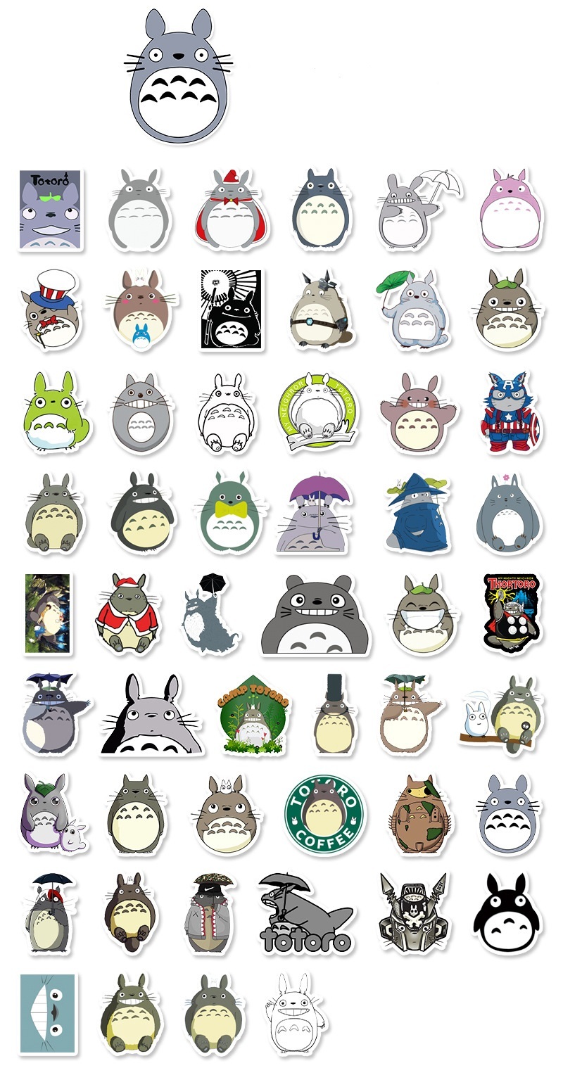 Наклейки Мой сосед Тоторо / Хаяо Миядзаки / My Neighbor Totoro водостойкие 52шт (4-7см)