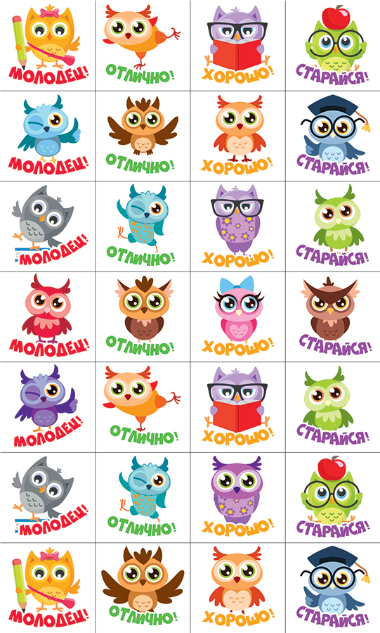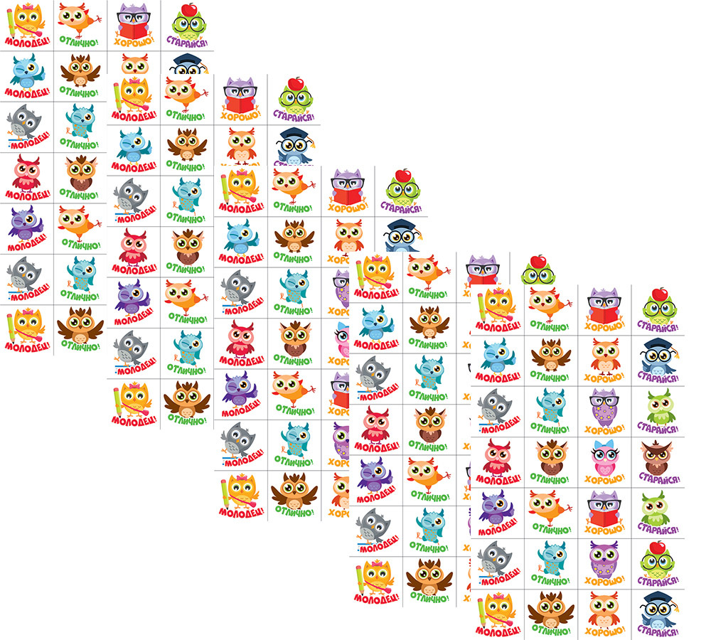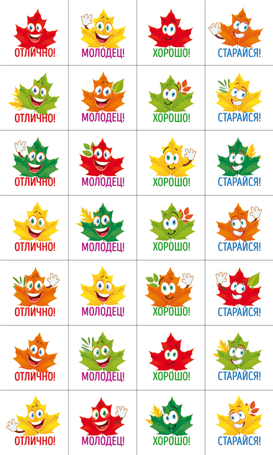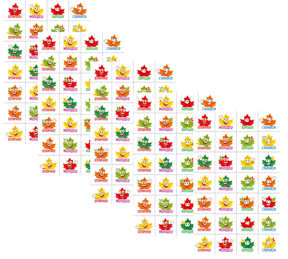Комплект наклеек для поощрения детей (оценки), 5 листов, размер 153мм*92мм, артикул 88.780