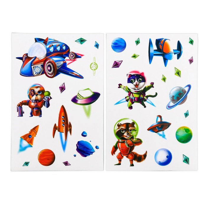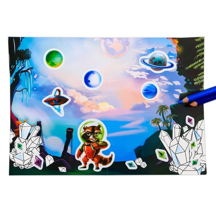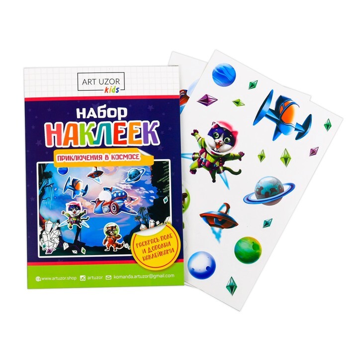 Наклейки детские/Набор наклеек с раскраской Приключения в космосе, 14.5 х 21 см