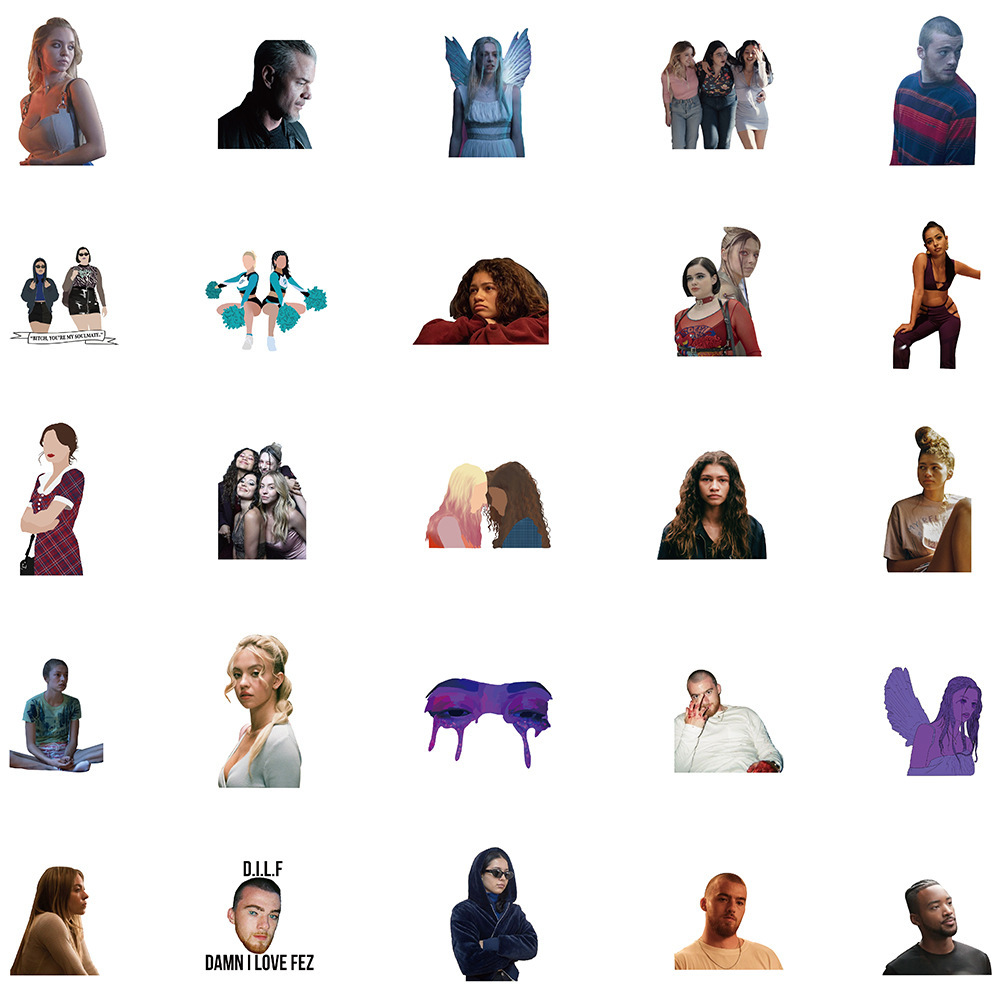 Набор наклеек стикеров, Эйфория Телевизионная драма, 50шт