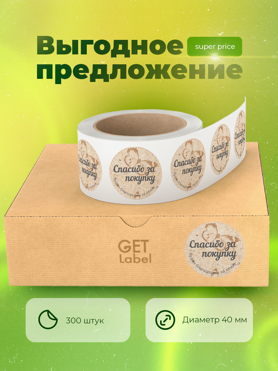 Наклейки "Спасибо за покупку", диаметр 40 мм, 300 штук.