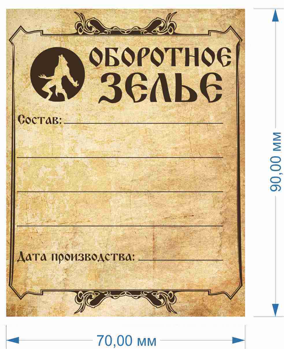 Контр-этикетка для самогона "Оборотное зелье", 15 шт.