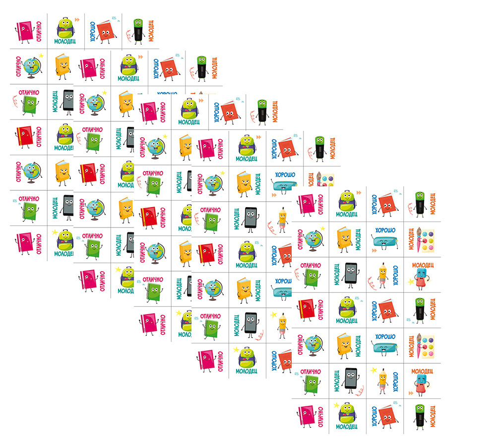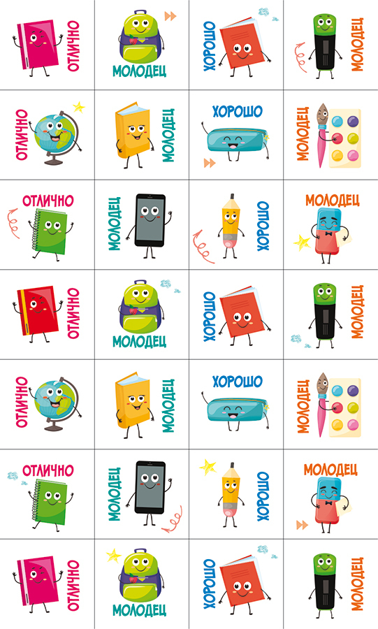 Комплект наклеек для поощрения детей (оценки), 5 листов, размер 153мм*92мм, артикул 88.778
