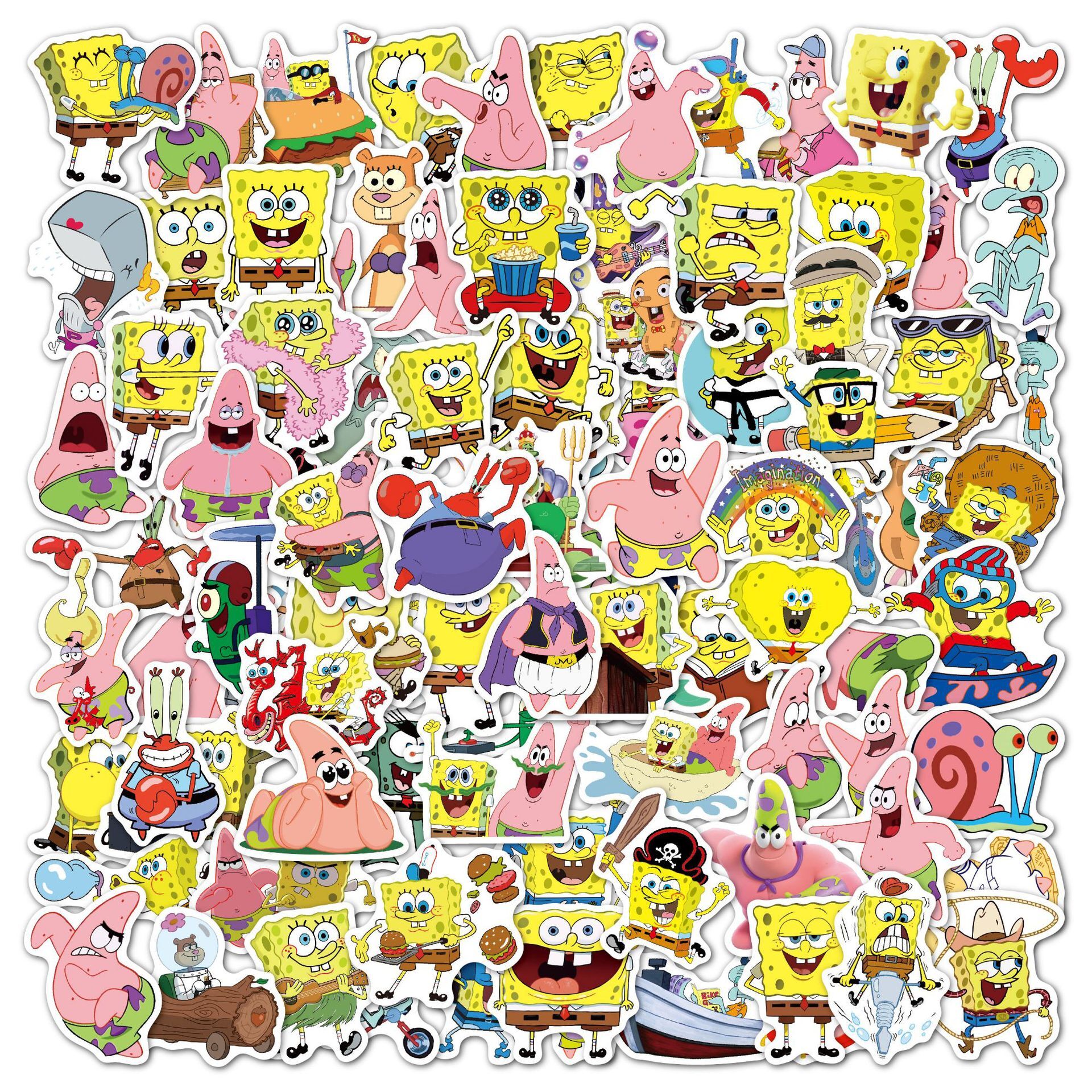 Наклейки Губка Боб / Спанч Боб водостойкие 100шт (5-7см)