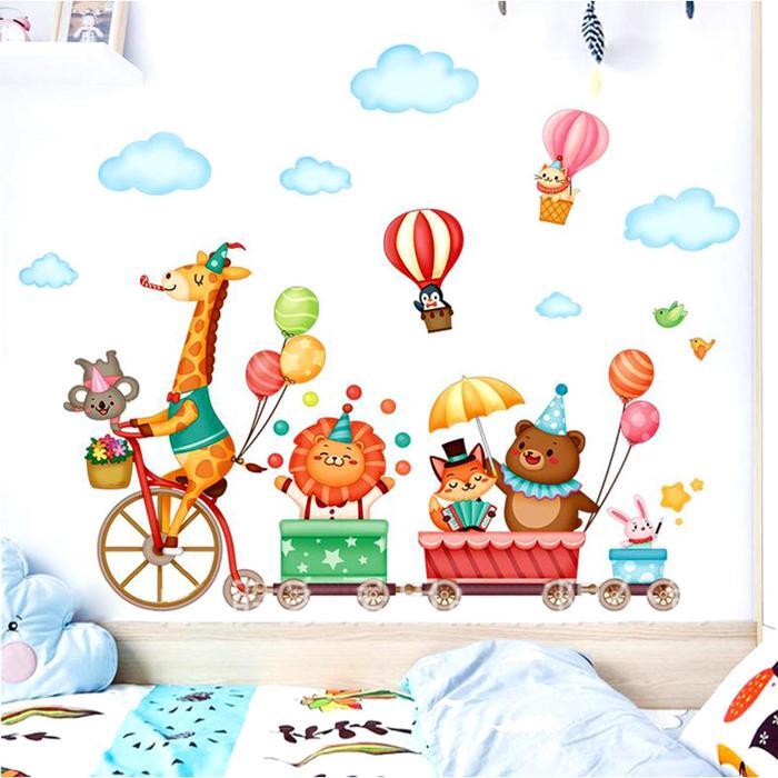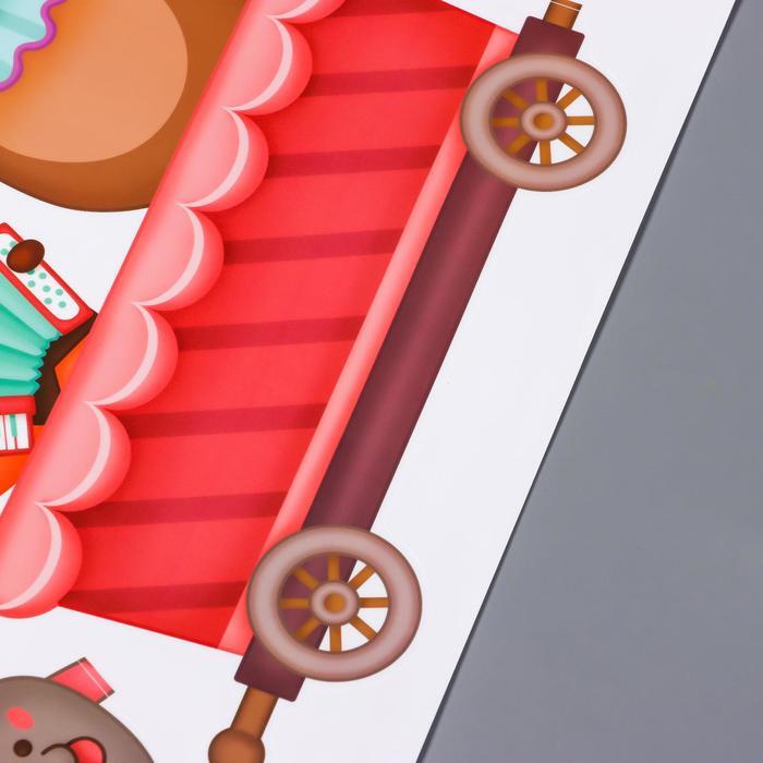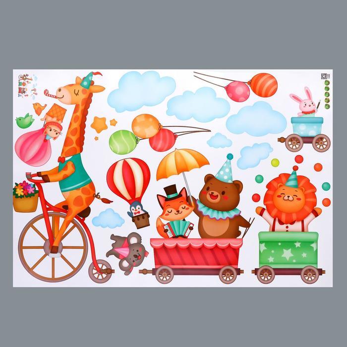 Наклейка пластик интерьерная цветная "Цирковые звери на паровозике" 60х90 см