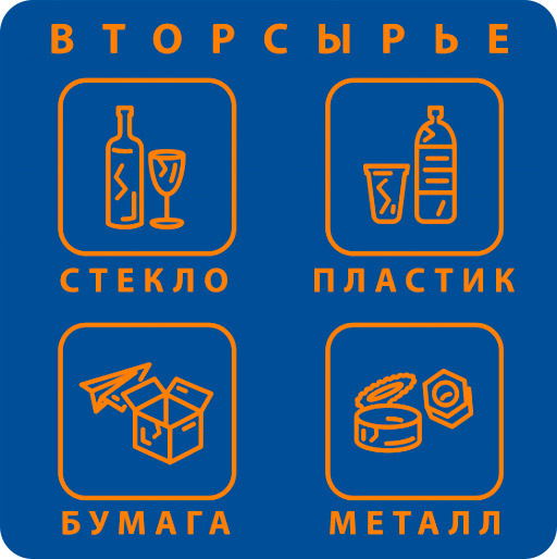 Наклейка на мусорный контейнер "Вторсырьё" для сортировки отходов, размер 40x40 см.