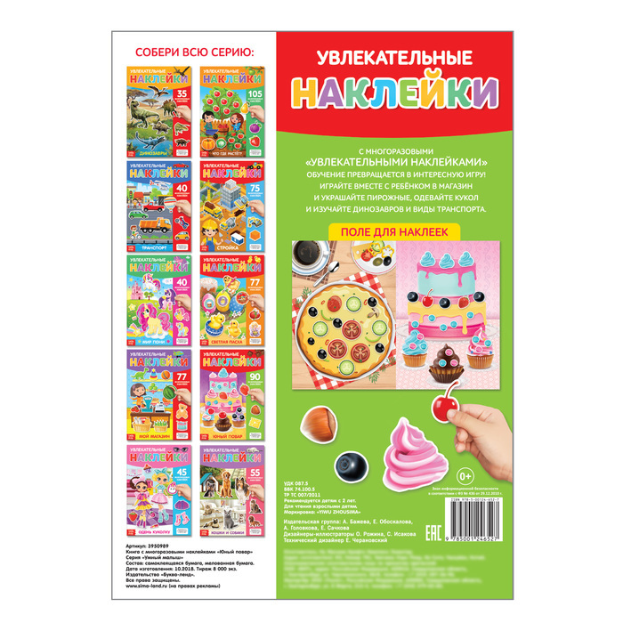 Наклейки детские/Наклейки многоразовые Юный повар, формат А4