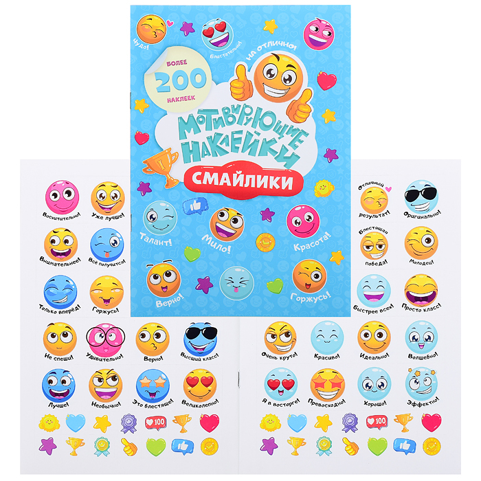Мотивирующие наклейки. Смайлики. Серия Веселые наклейки. 204 шт. 4607177458922