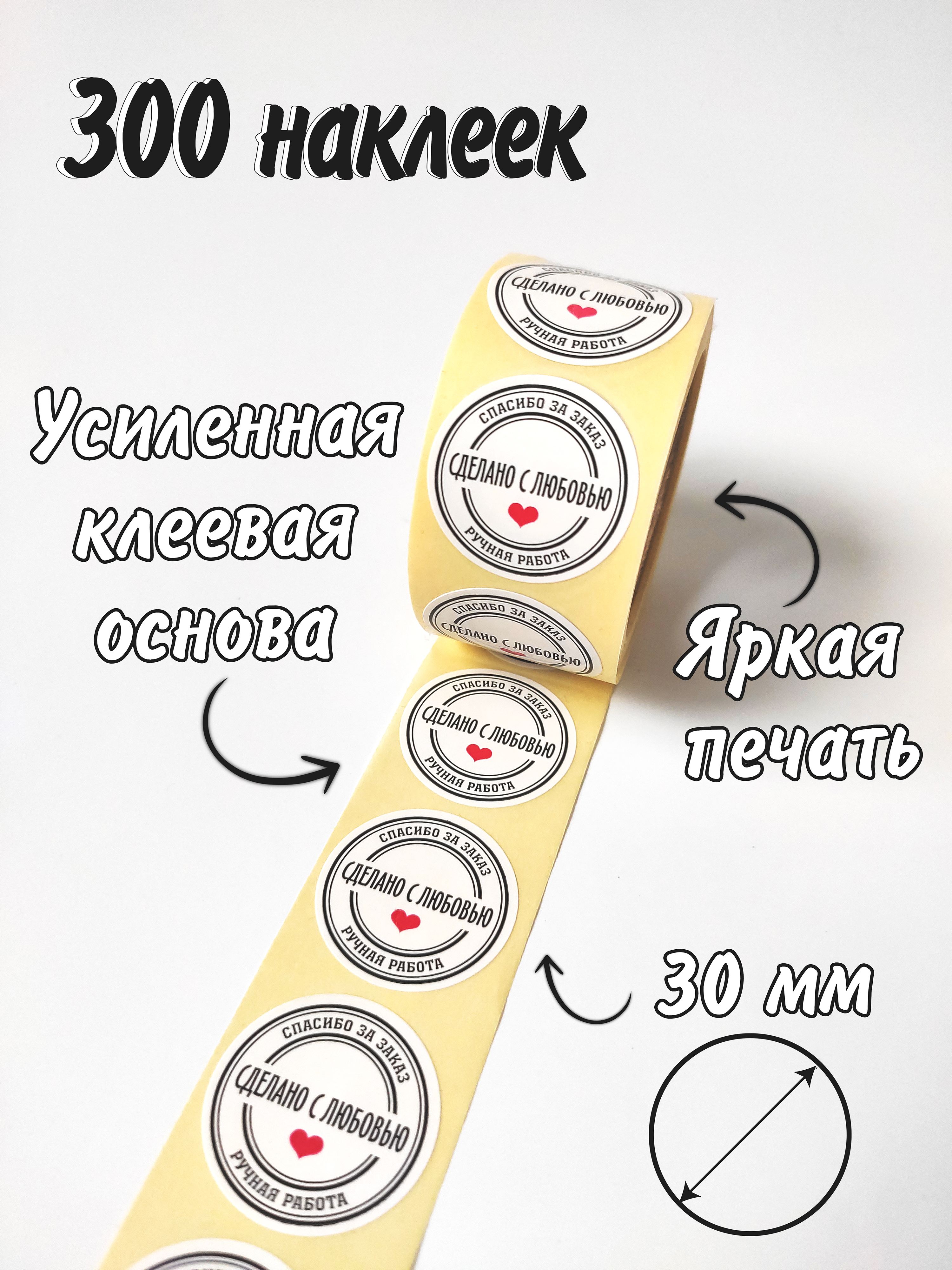 Наклейки "Сделано с Любовью", диаметр 30 мм, 300 штук