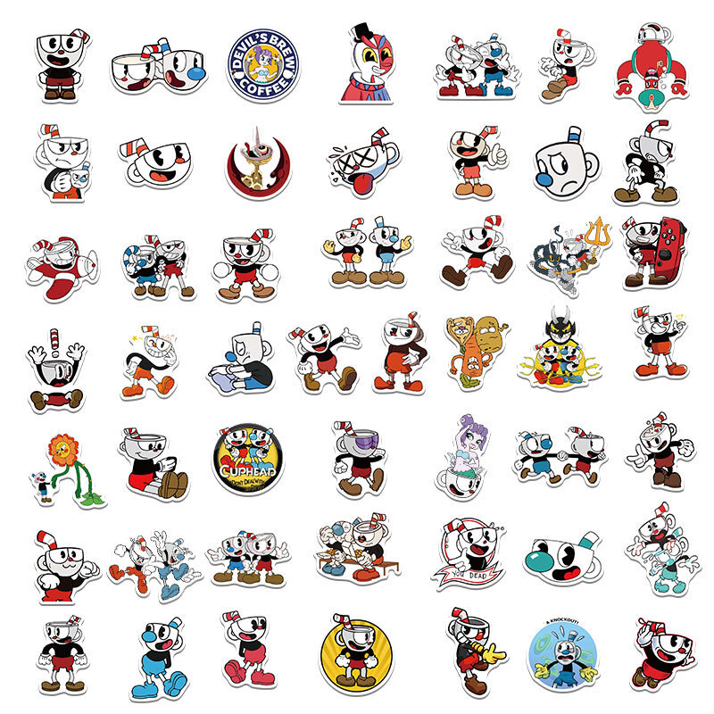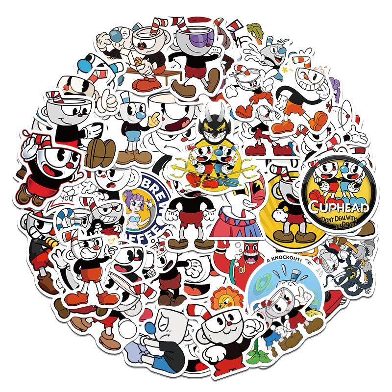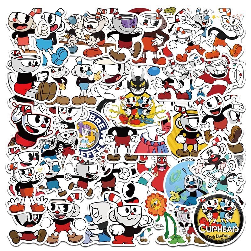 Наклейки Капхеад / Cuphead водостойкие 50шт (3-6см)