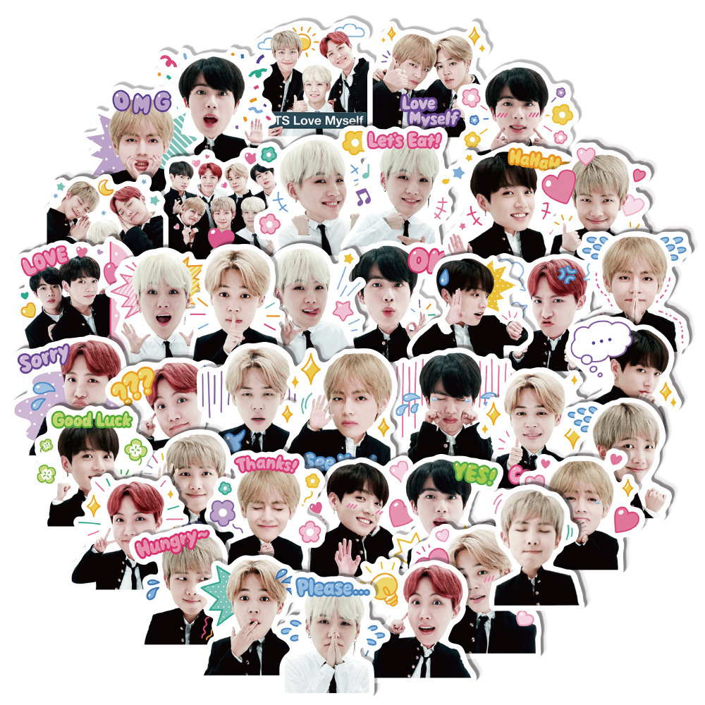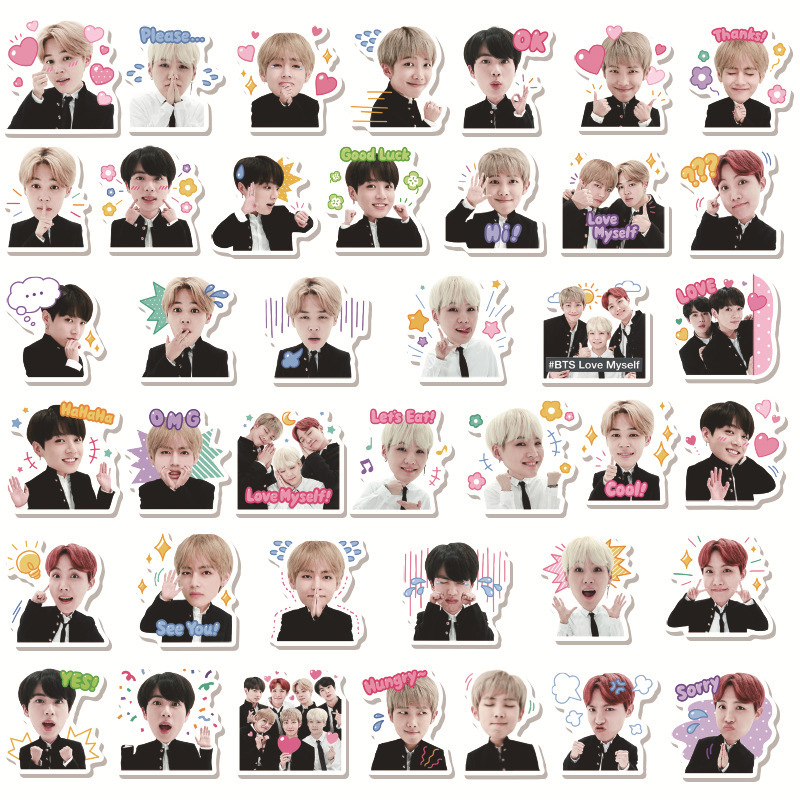 Наклейки BTS / Bangtan Boys водостойкие 40шт (4-6см)