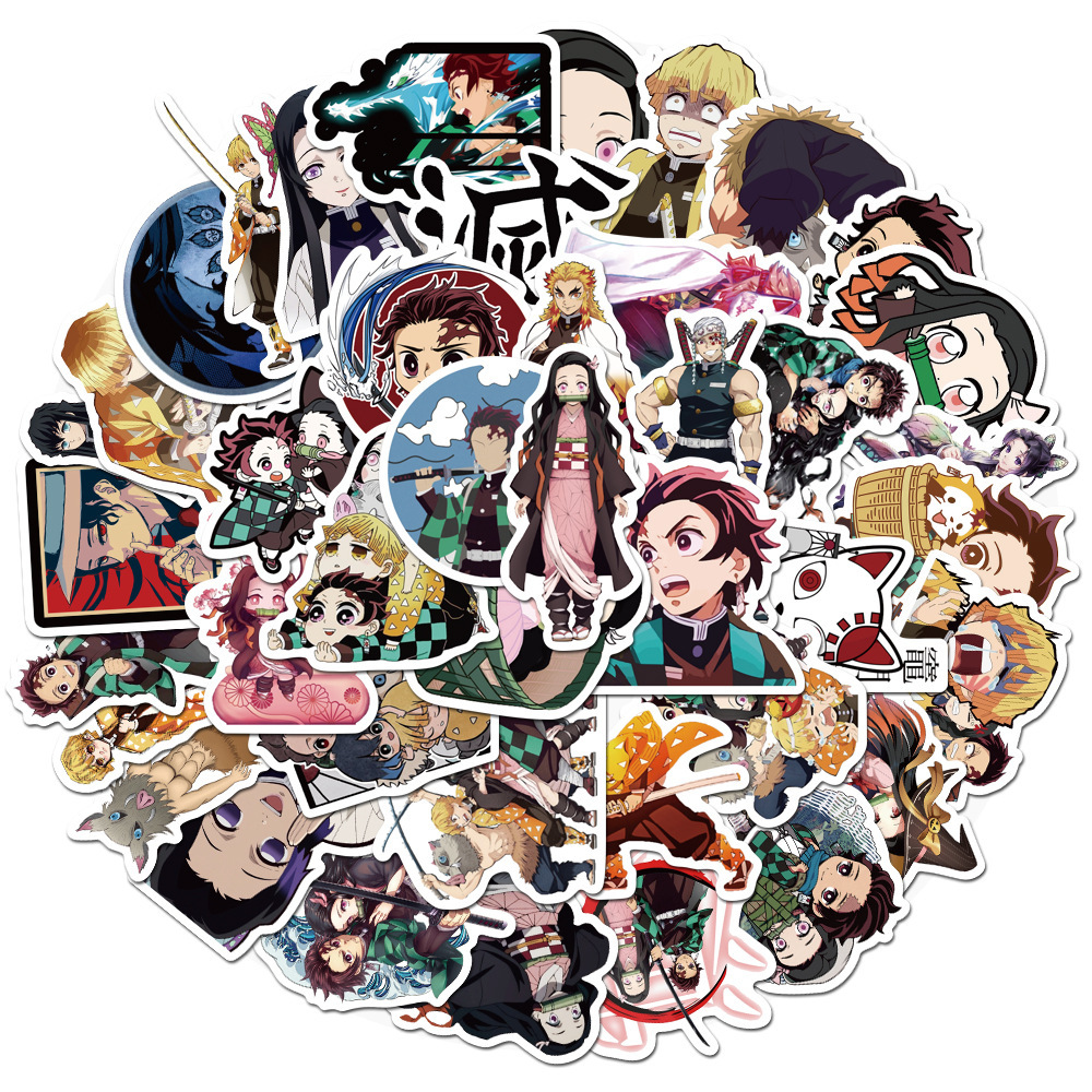 Наклейки Клинок, рассекающий демонов / Demon Slayer водостойкие 50шт A (3-6 см)