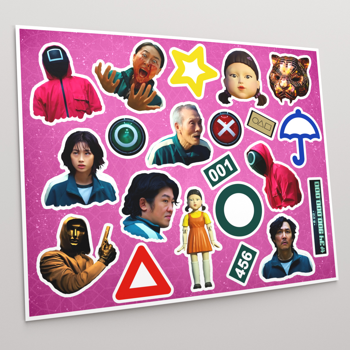 Наклейки декоративные (Стикеры самоклеящиеся) набор - "Игра в кальмара" 20x25 см