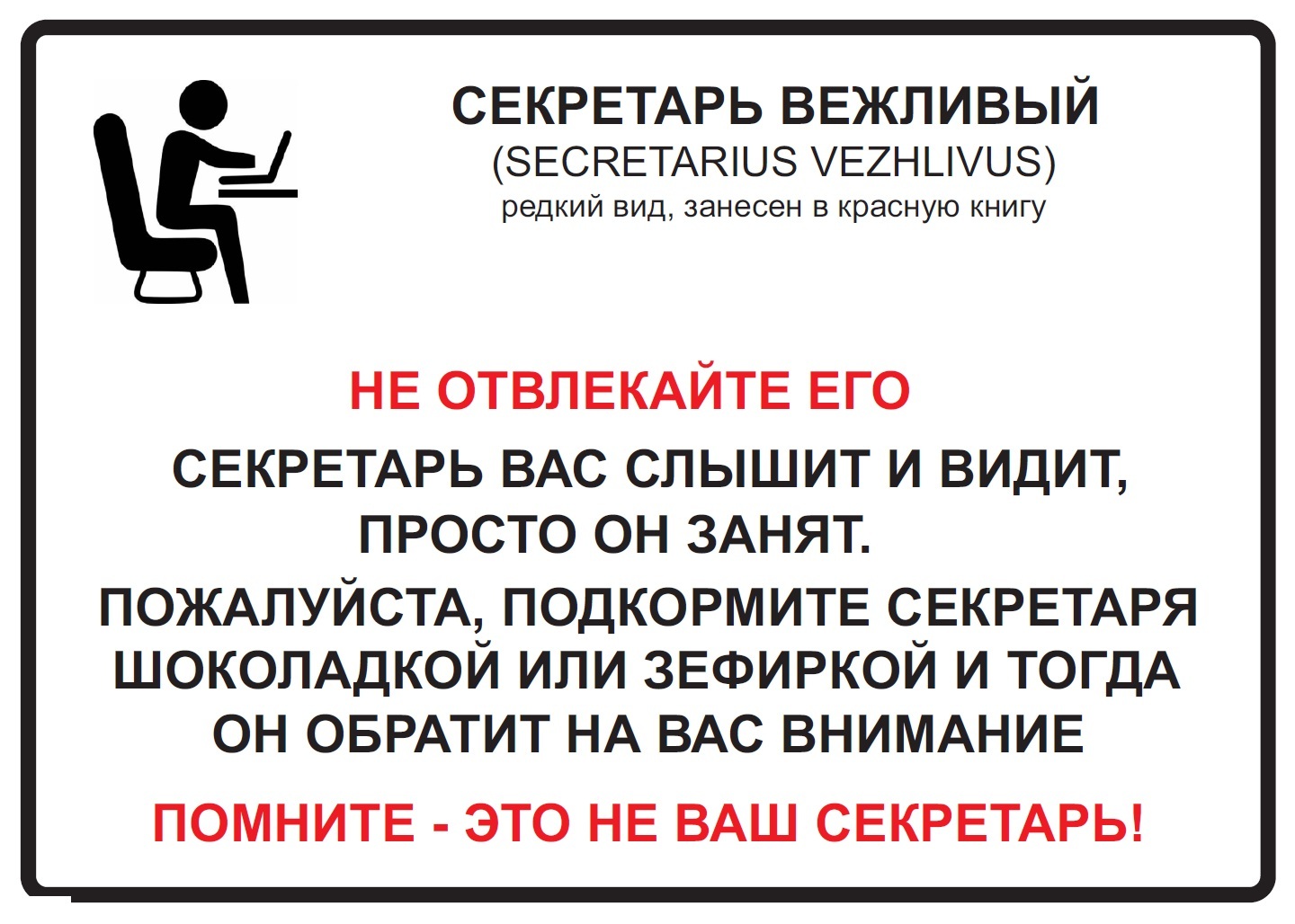 Табличка Секретарь А4 с двухсторонним скотчем ПВХ