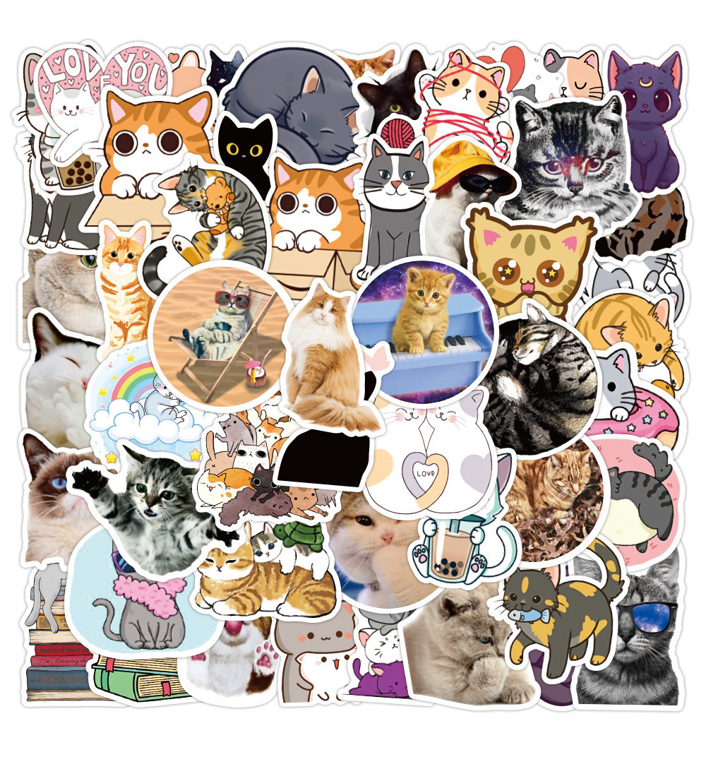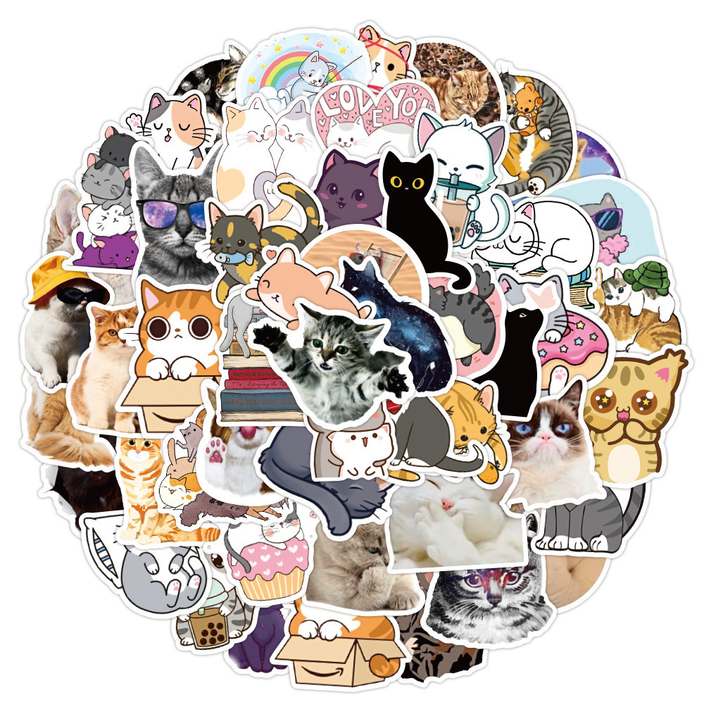 Наклейки Котики / Cats D водостойкие 50шт (4-7см)