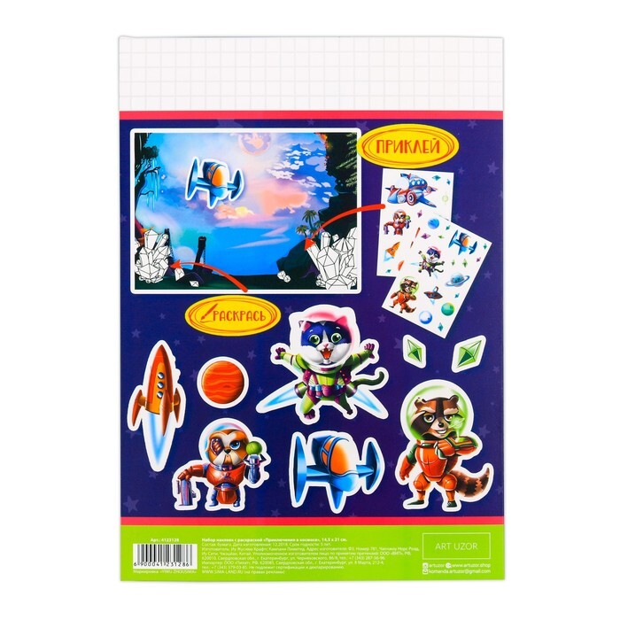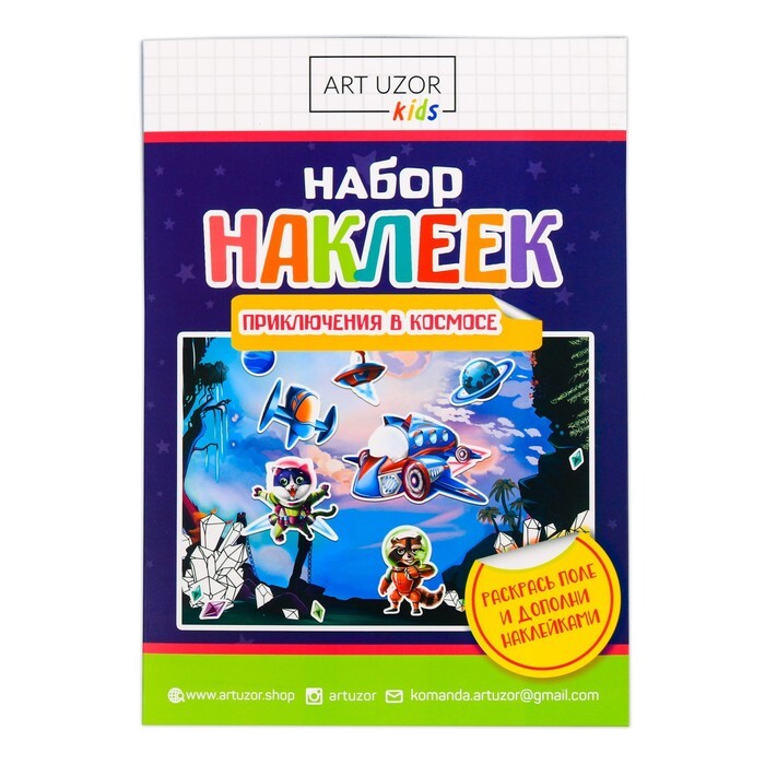 Наклейки детские/Набор наклеек с раскраской Приключения в космосе, 14.5 х 21 см