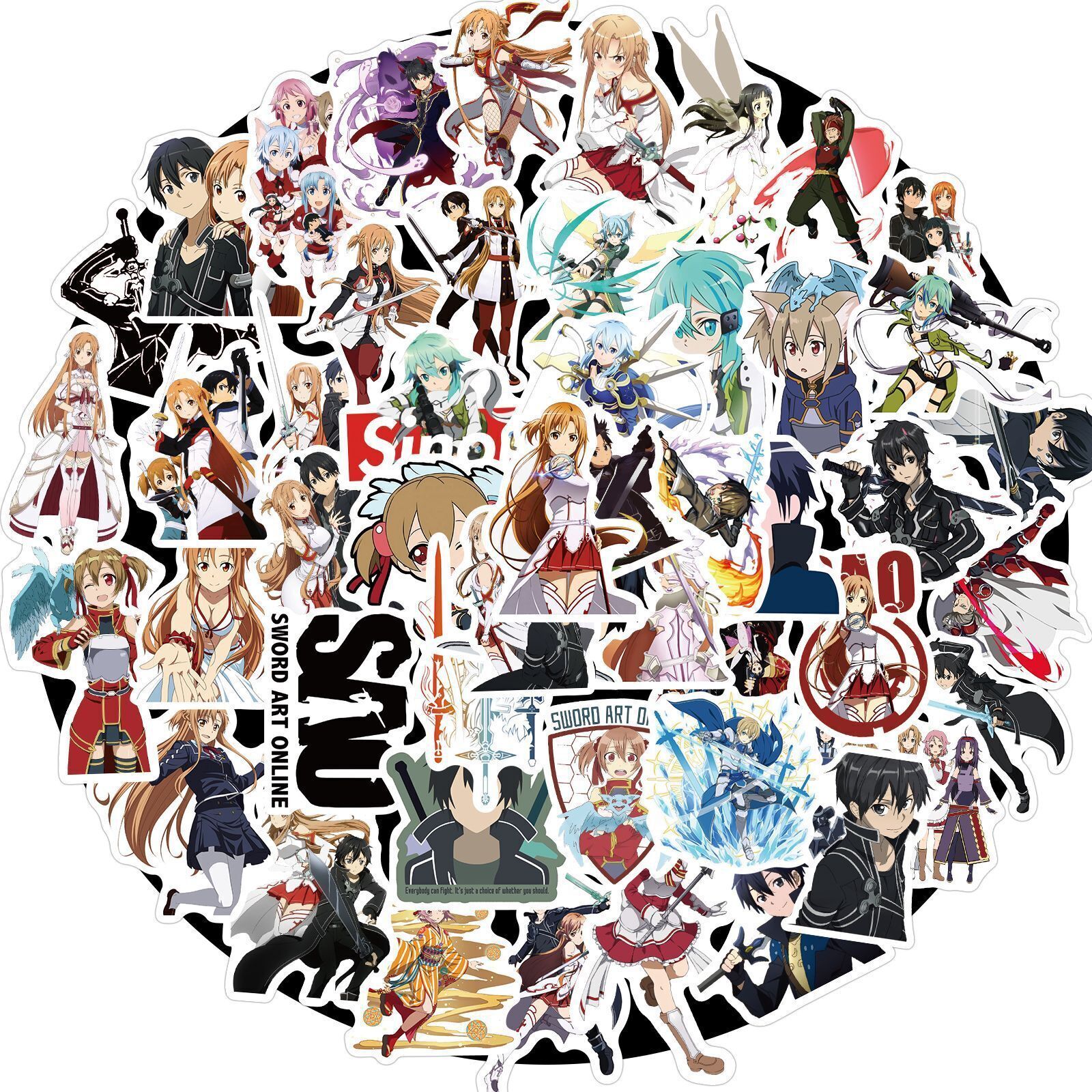 Наклейки Мастера Меча Онлайн / Sword Art Online водостойкие 50шт (3-6см)