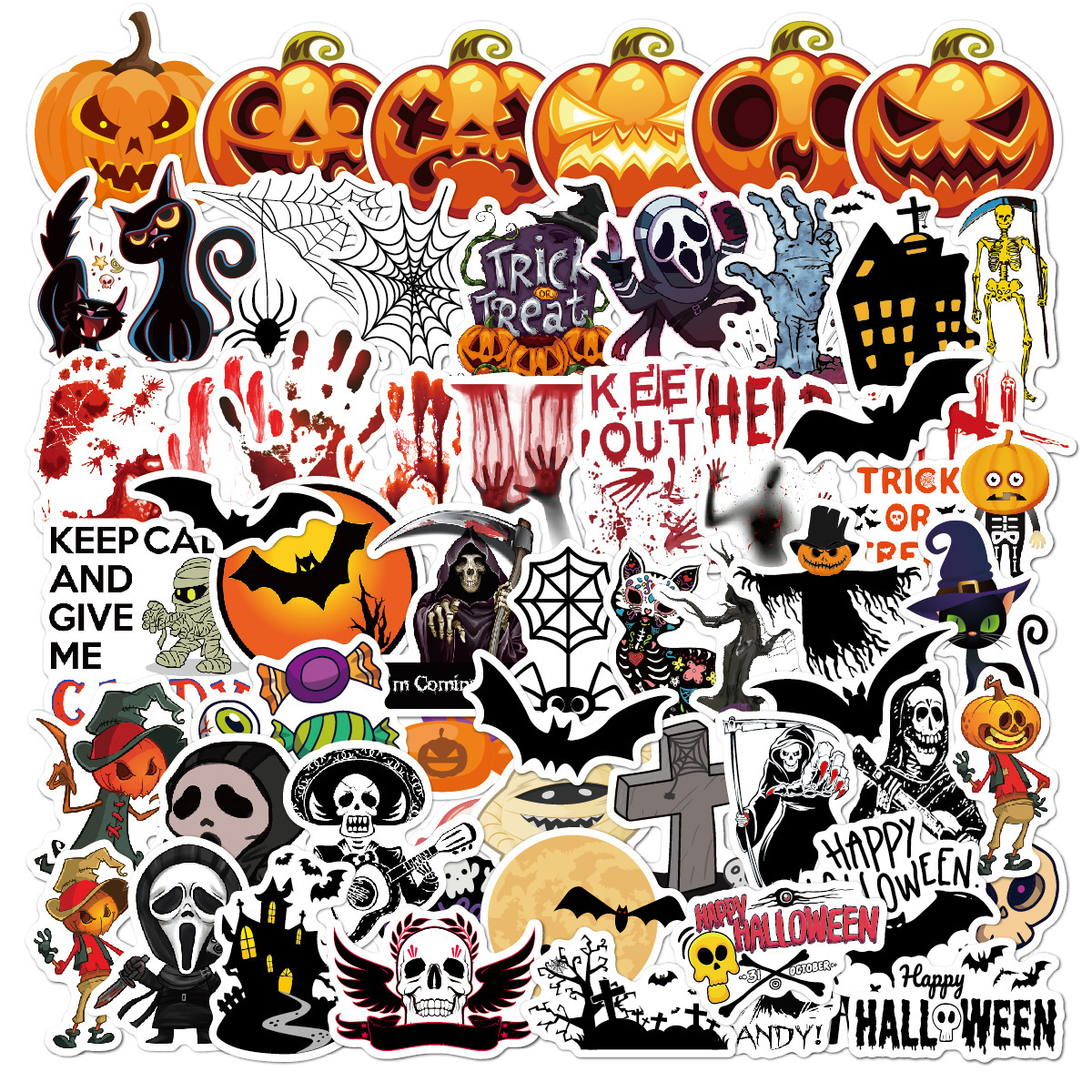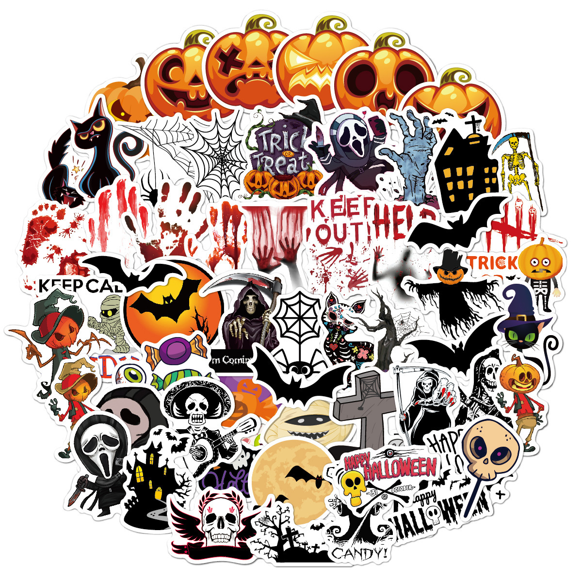 Наклейки Хэллоуин вечеринка / Halloween horror party водостойкие 60шт (4-7см)