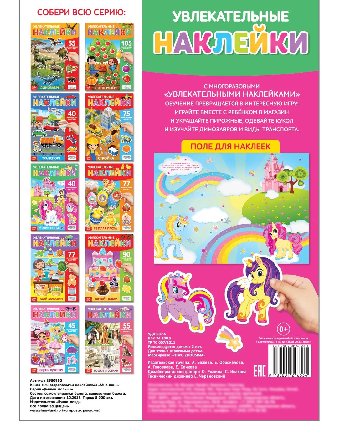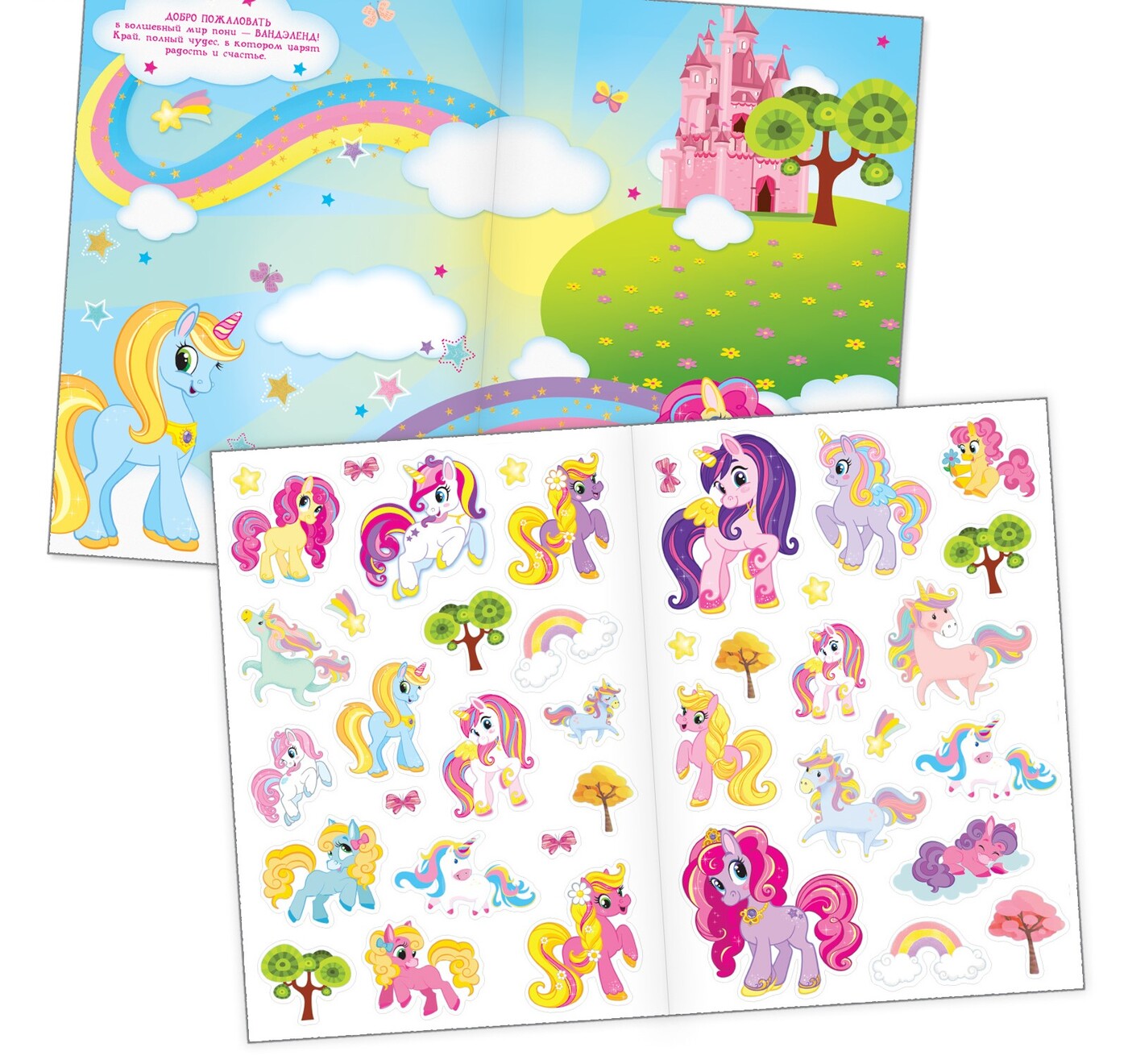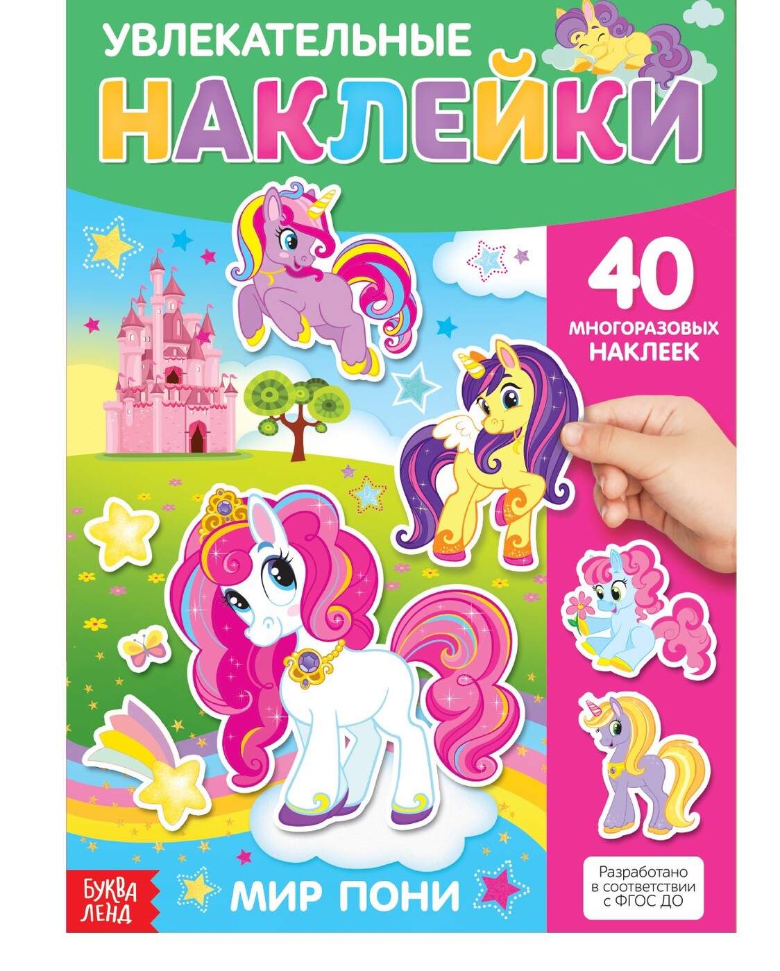 Наклейки многоразовые, яркие, глянцевые "Мир пони", формат А4
