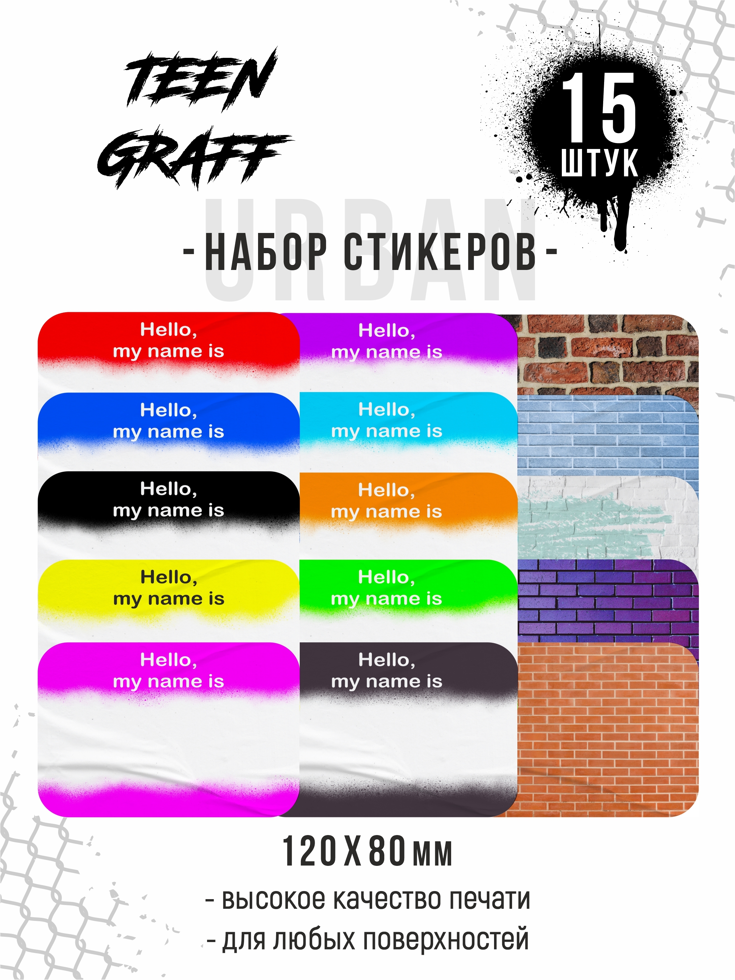 Teen.Graff Стикеры, наклейки для граффити и теггинга, HELLO MY NAME IS, 8x12 см, 15 шт