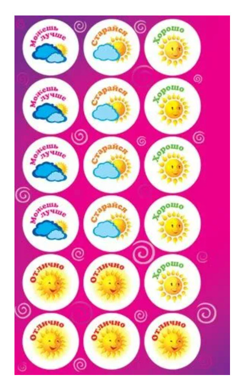 Комплект наклеек для поощрения детей (оценки), 5 листов, размер 153мм*92мм, артикул 88.829