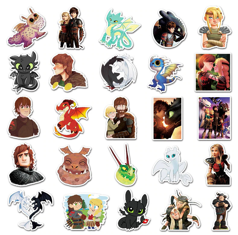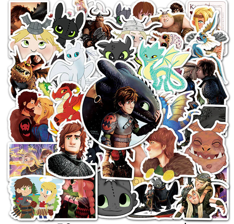Наклейки Как приручить дракона водостойкие 50шт (3-6см)