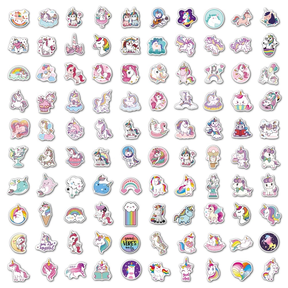 Наклейки Единороги водостойкие 100шт (4-7см)