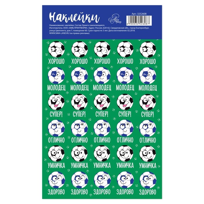 Наклейки детские/Наклейки-оценки Футбольный мяч, 10,5 х 18 см
