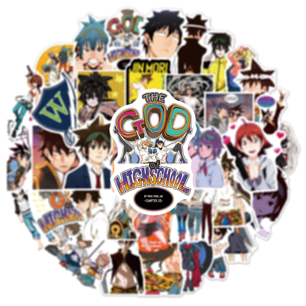 Наклейки Бог старшей школы / The God of High School водостойкие 50шт (4-6см)