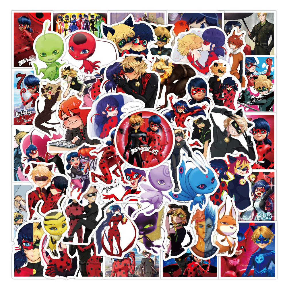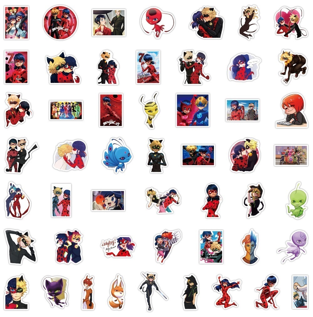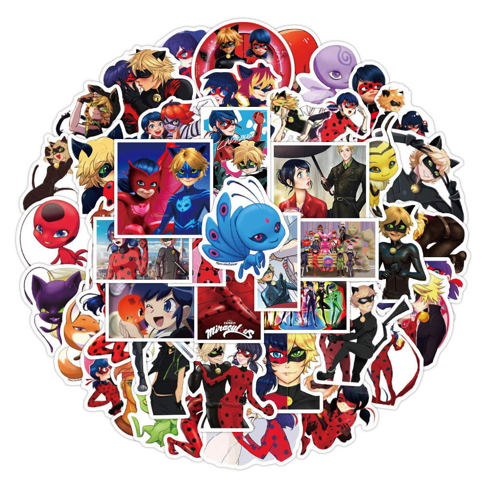 Наклейки Леди Баг и Супер-Кот водостойкие 50шт (4-7см)