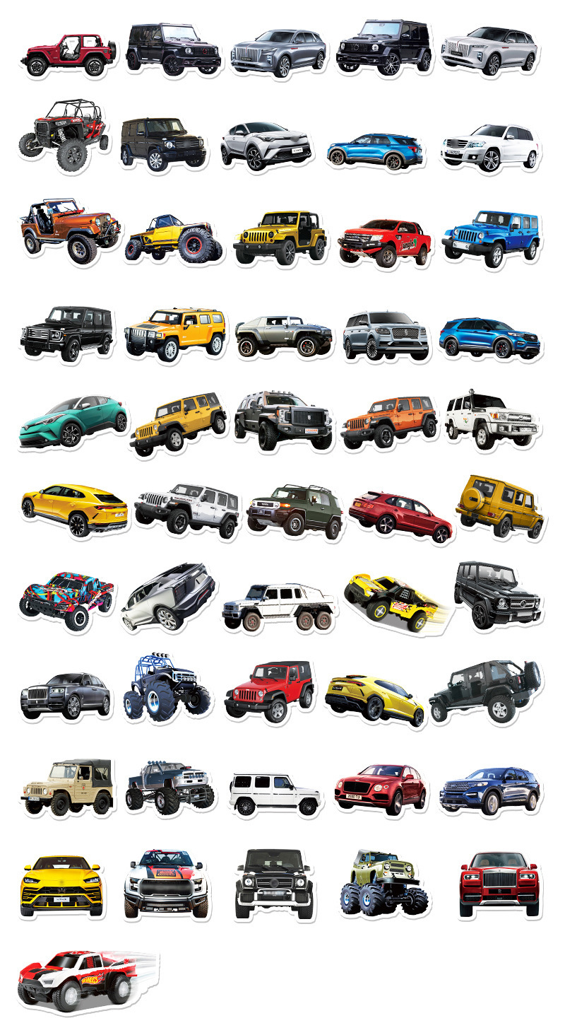 Наклейки машины внедорожники водостойкие 50шт (3-6см)
