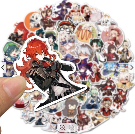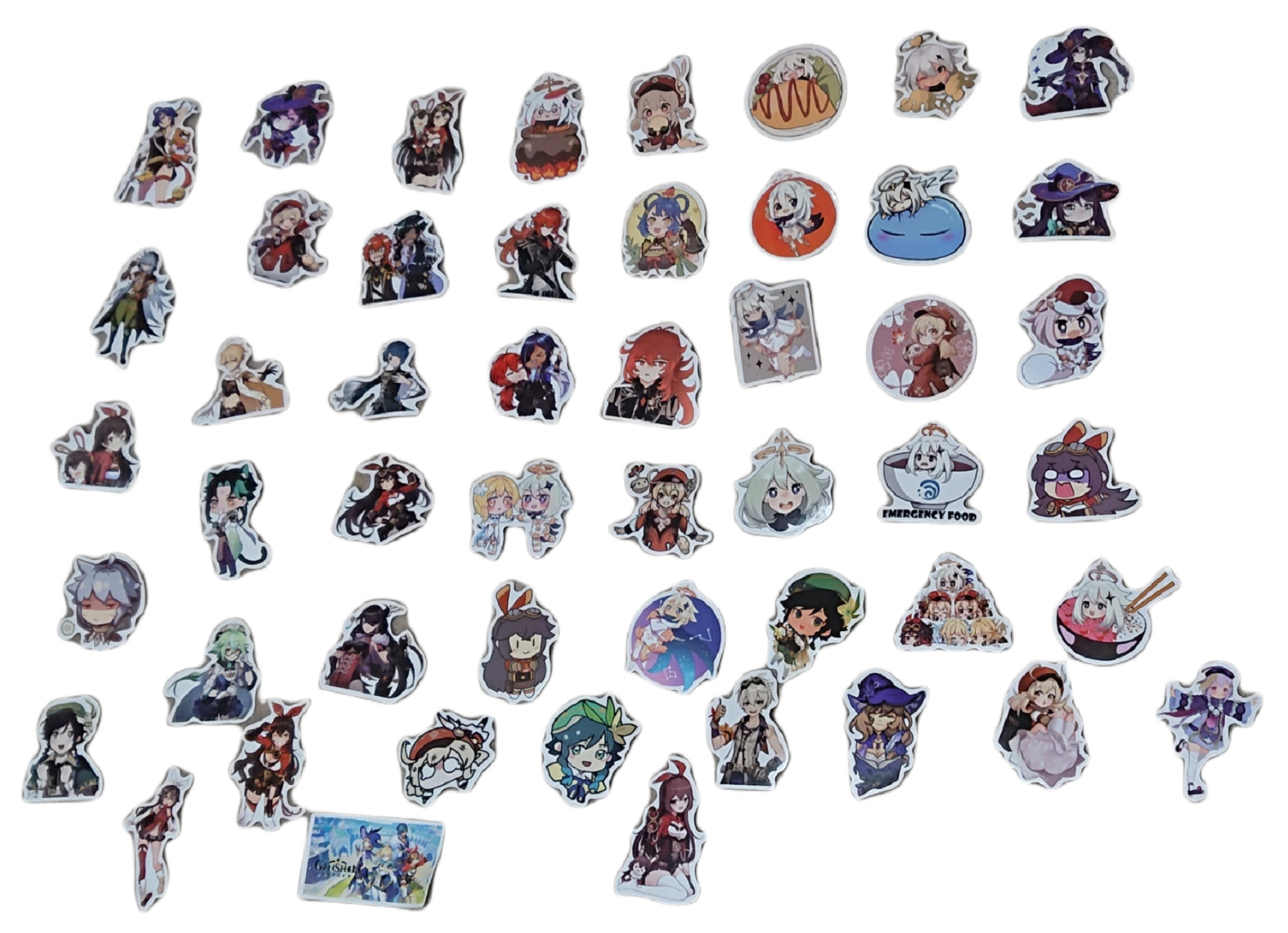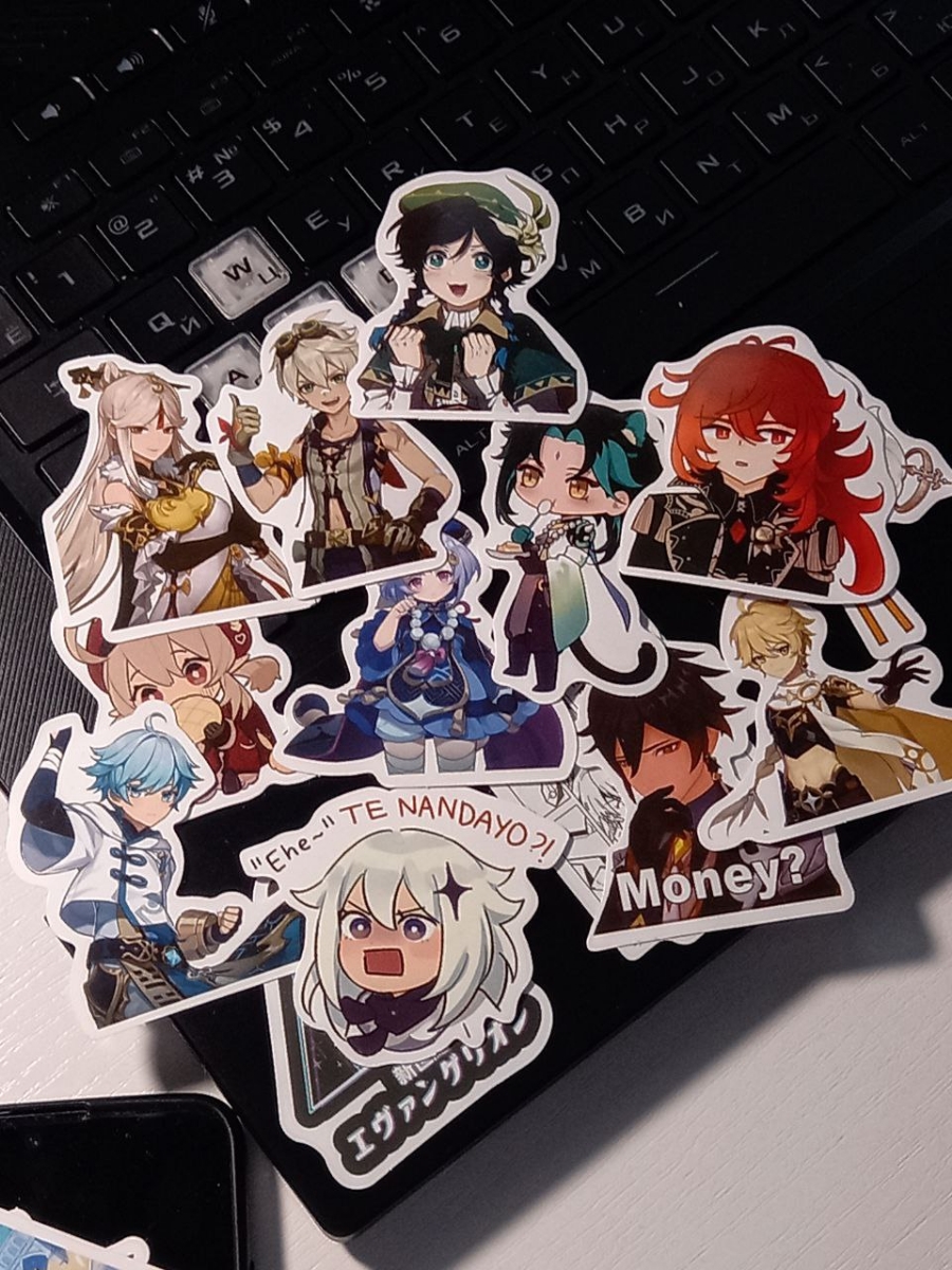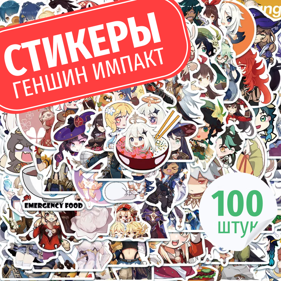 Наклейки Геншин Импакт 100шт 6-8 см, набор стикеров Genshin Impact, наклейки аниме