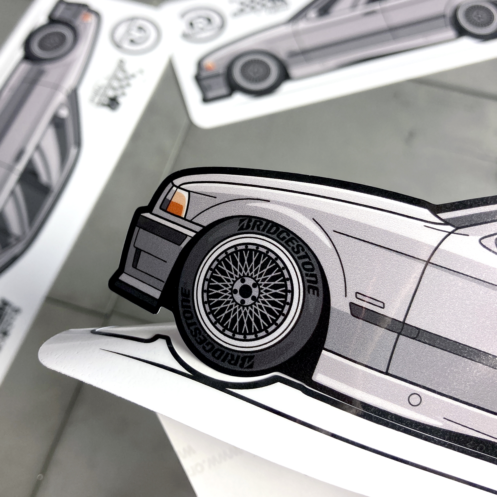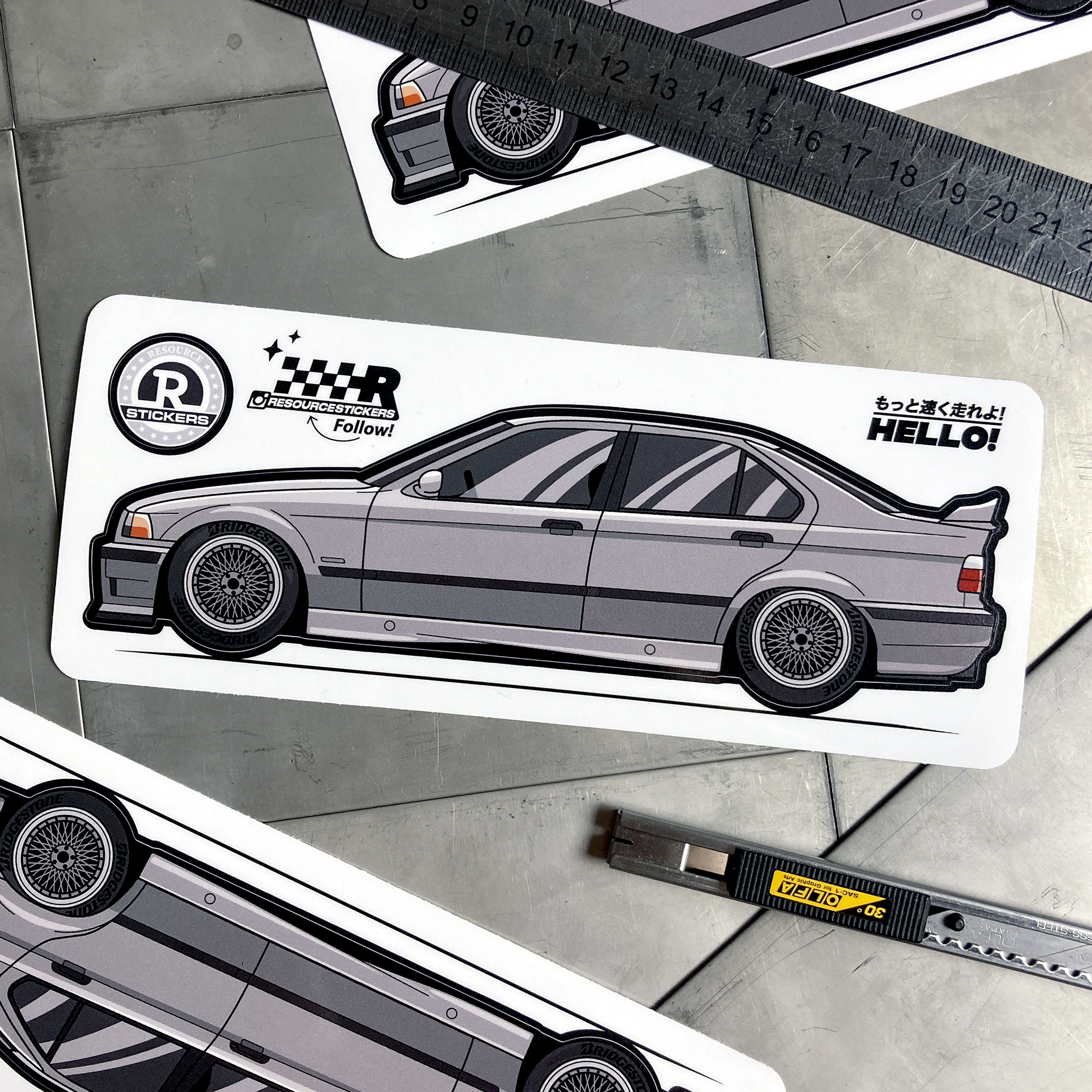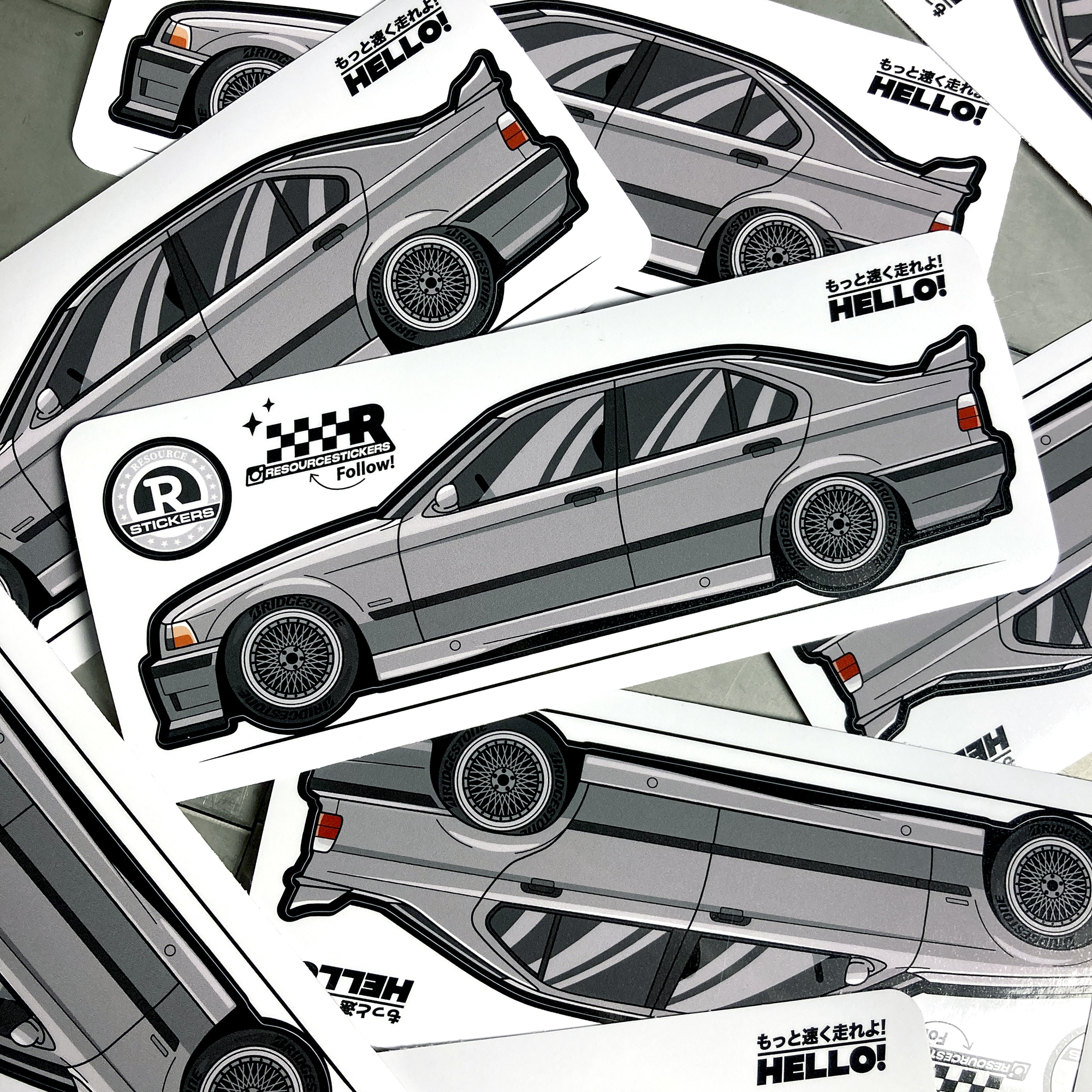 Виниловая наклейка машинка "BMW E36" светло-серый 17.5х5.5