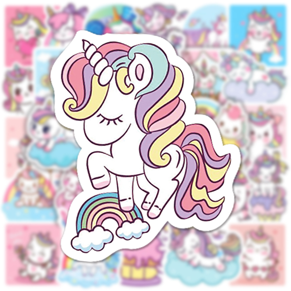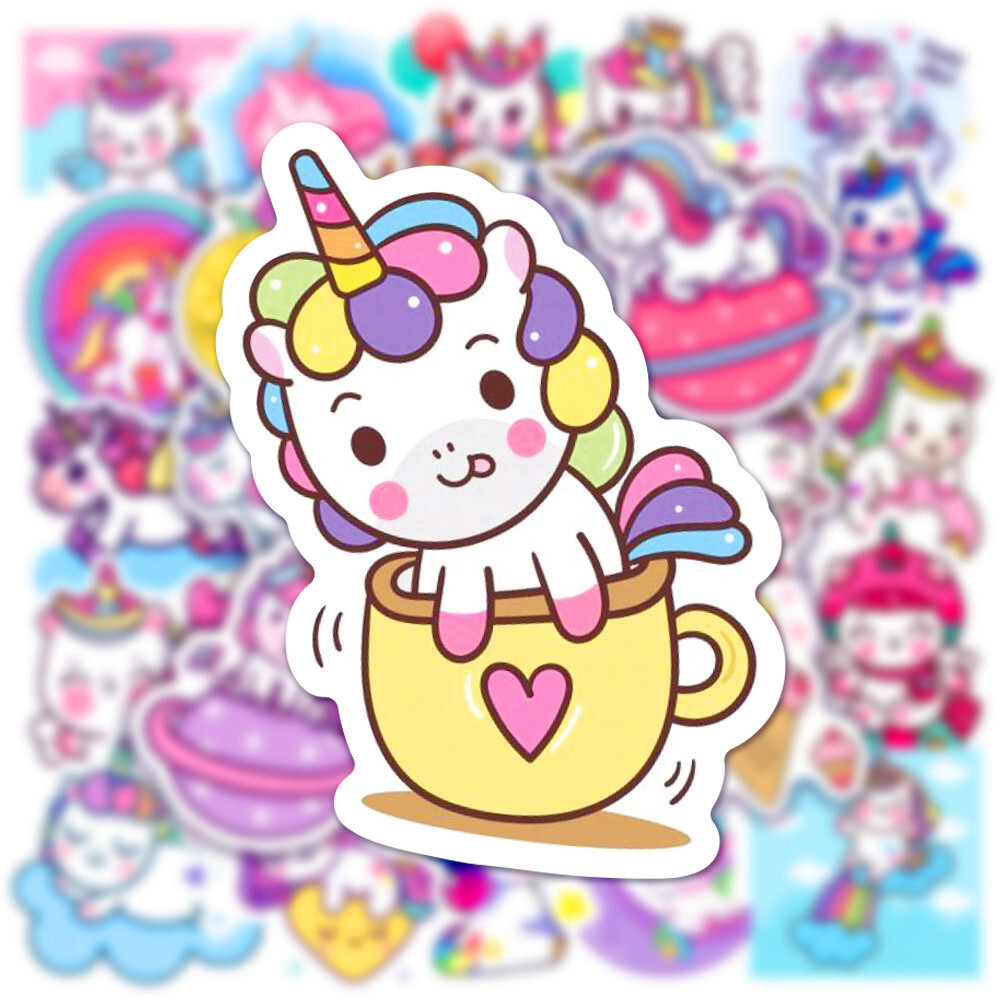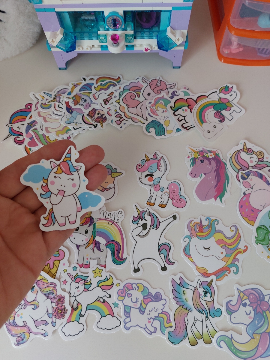 Наклейки Единороги водостойкие 50шт (3-6см)