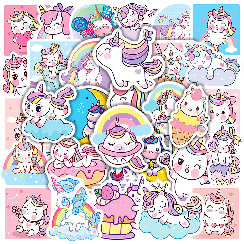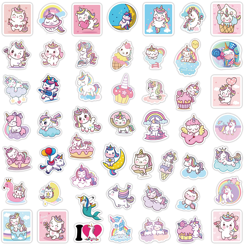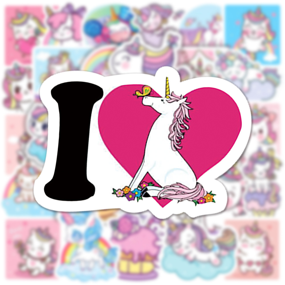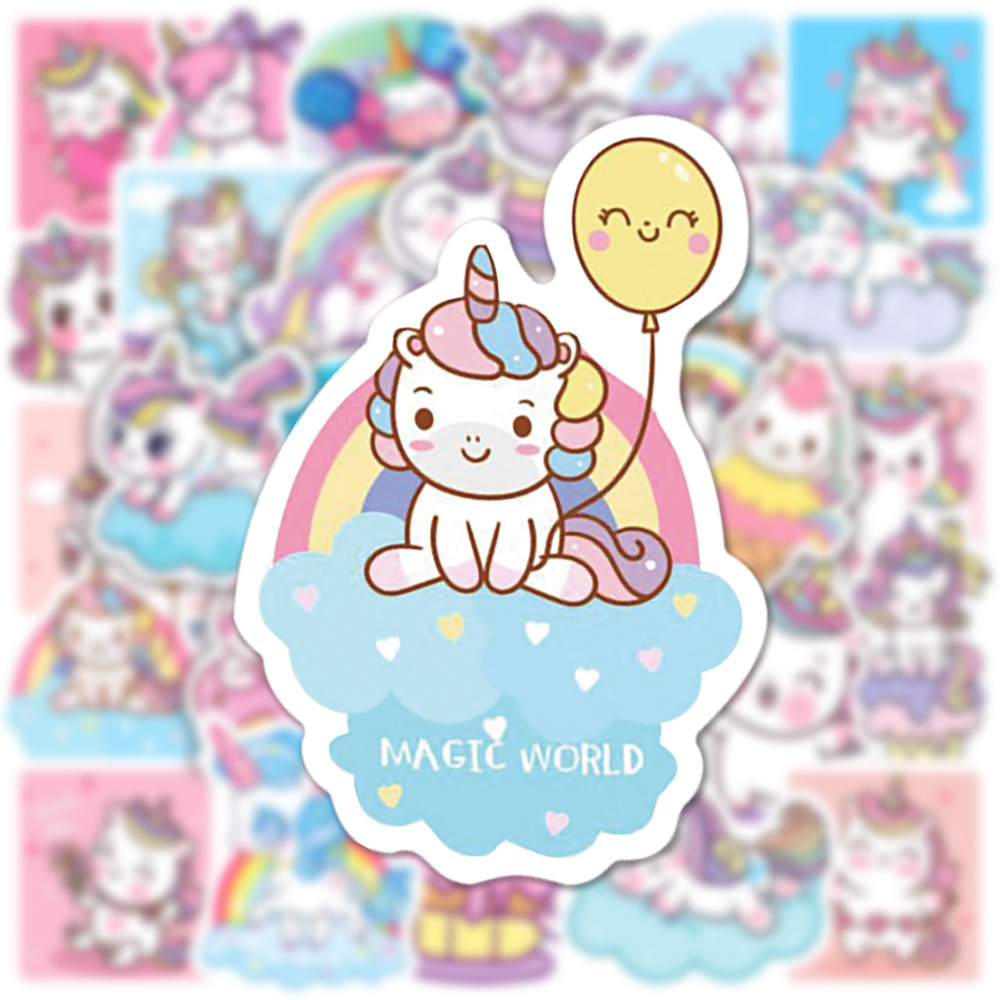 Наклейки Единороги водостойкие 50шт (3-6см)