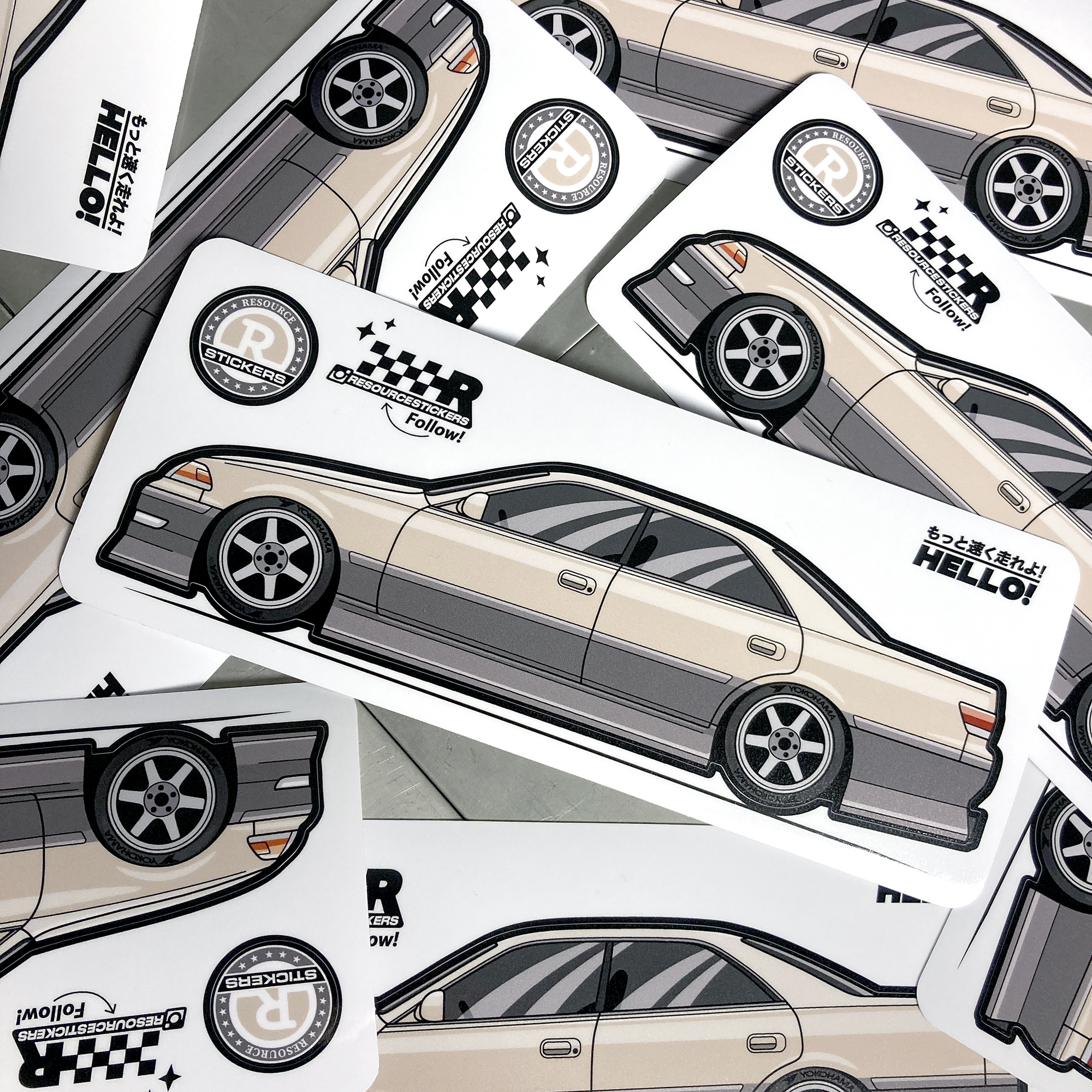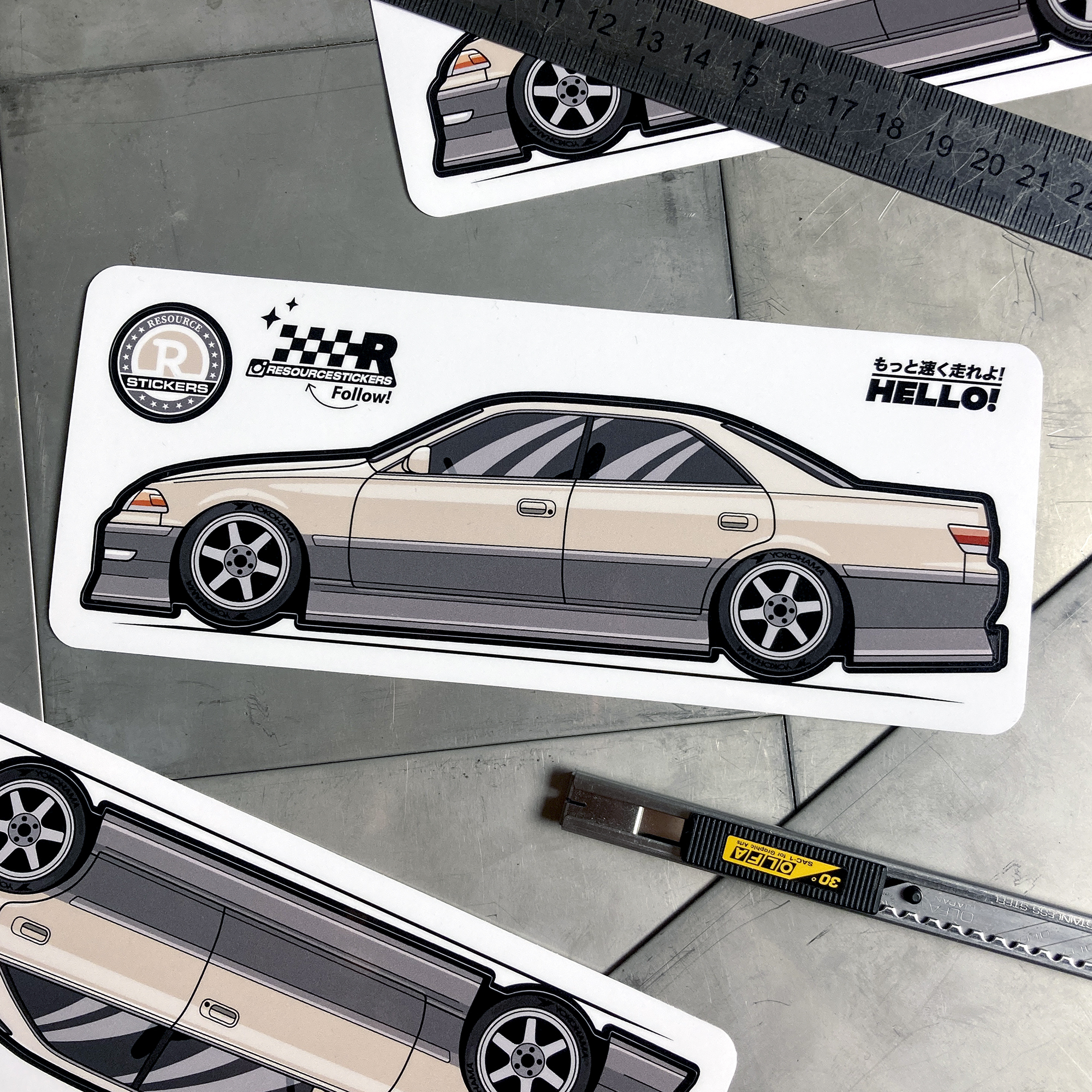 Виниловая наклейка машинка "Toyota Mark 2" бежевый, стикер JDM 17.5х5.5