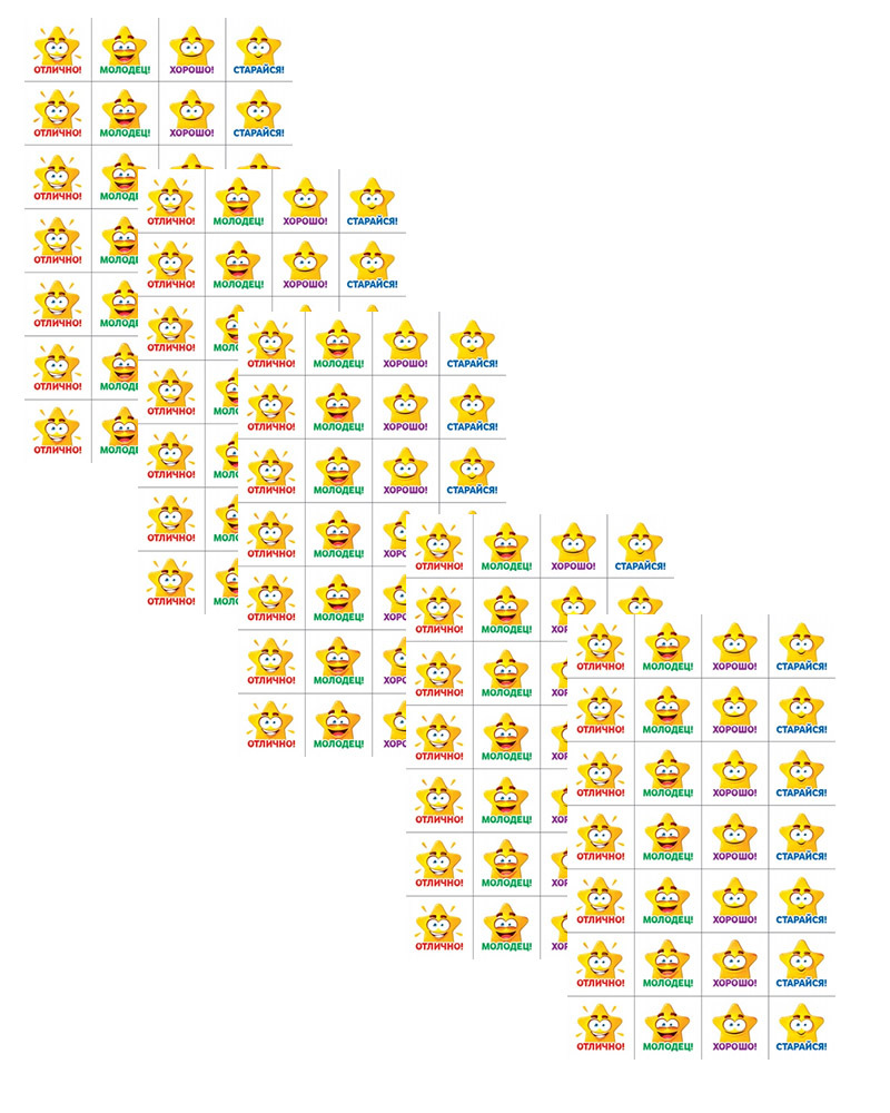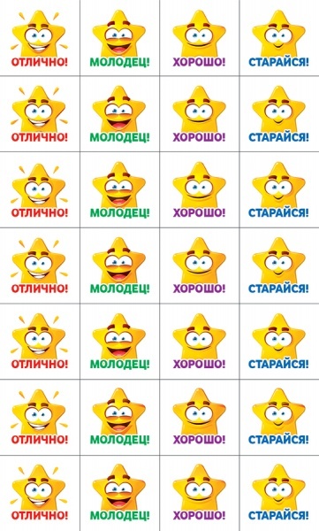 Комплект наклеек для поощрения детей (оценки), 5 листов, размер 153мм*92мм, артикул 88.788