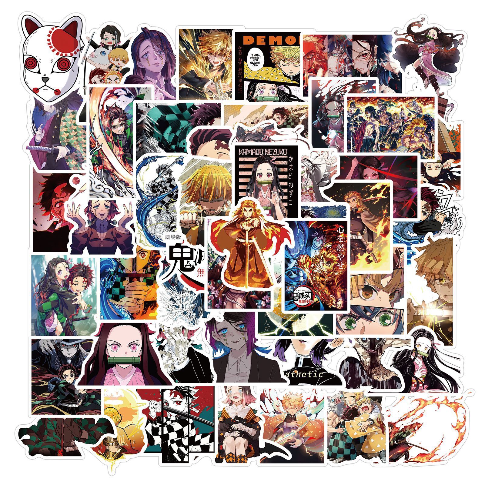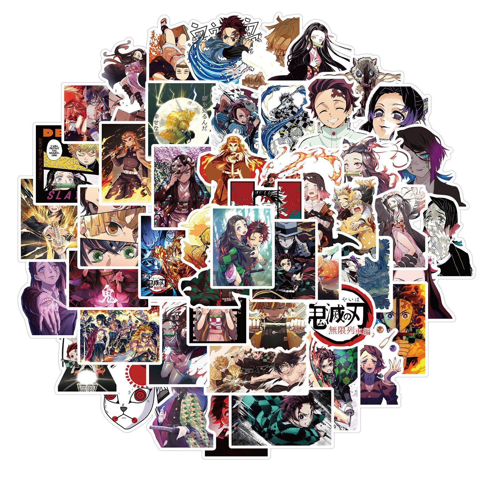 Наклейки Клинок, рассекающий демонов: Бесконечный поезд, Demon Slayer А водостойкие 50шт (4-7 см)