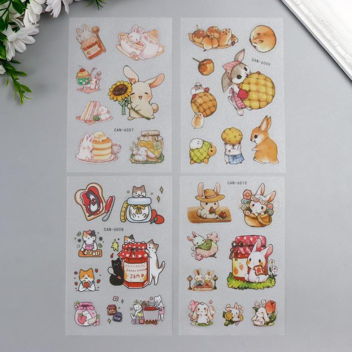 Наклейка бумага "Зайчики и котята" шершавая набор 4 шт 14,5*9,5 см