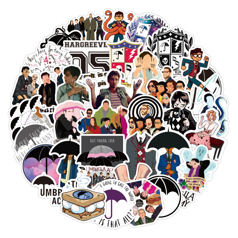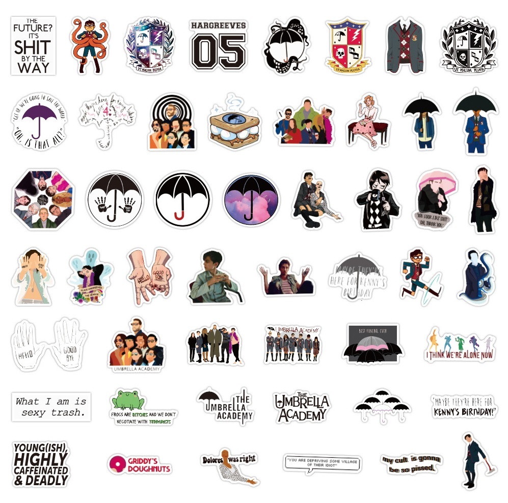 Наклейки Академия Амбрелла / Umbrella Academy водостойкие 50шт (4-7см)