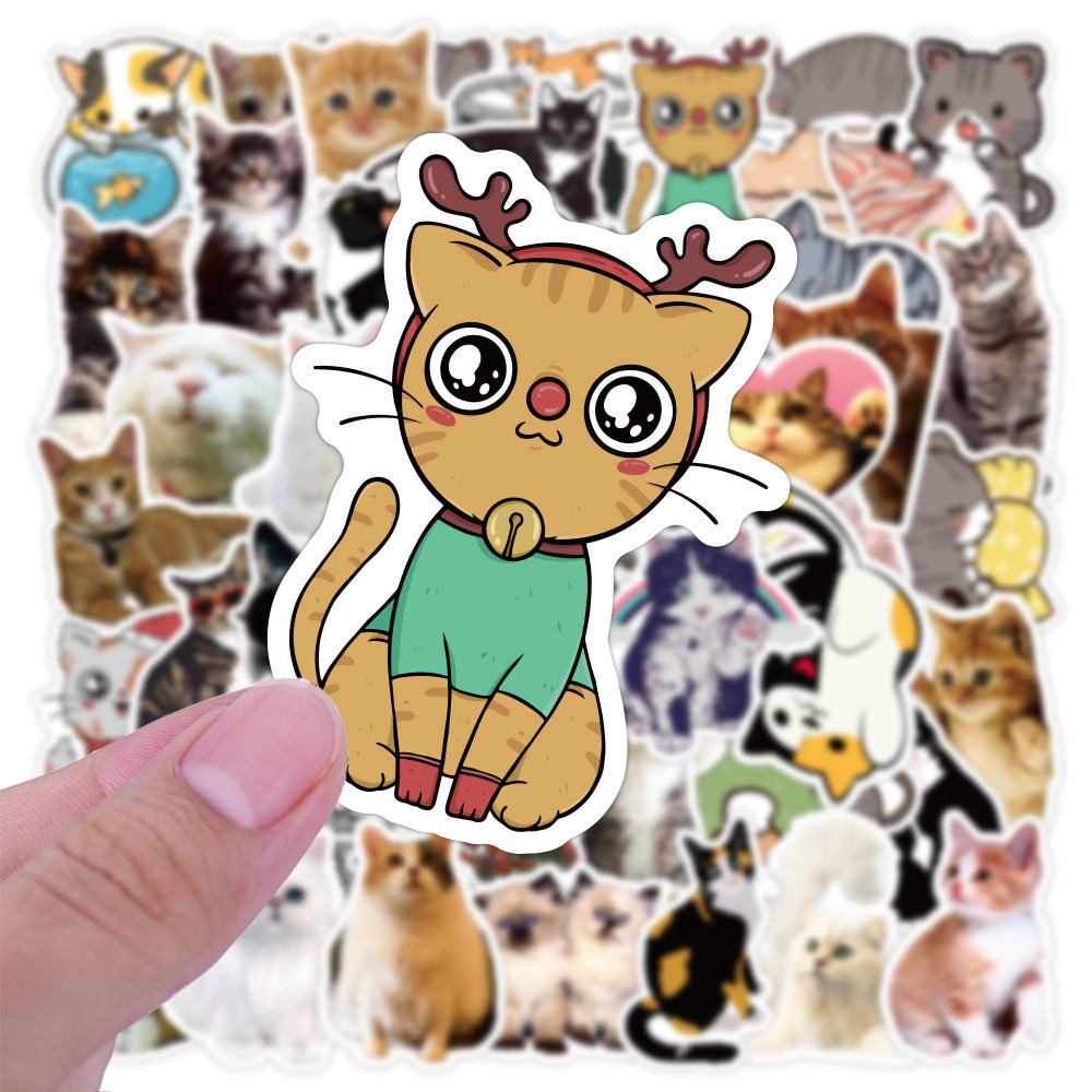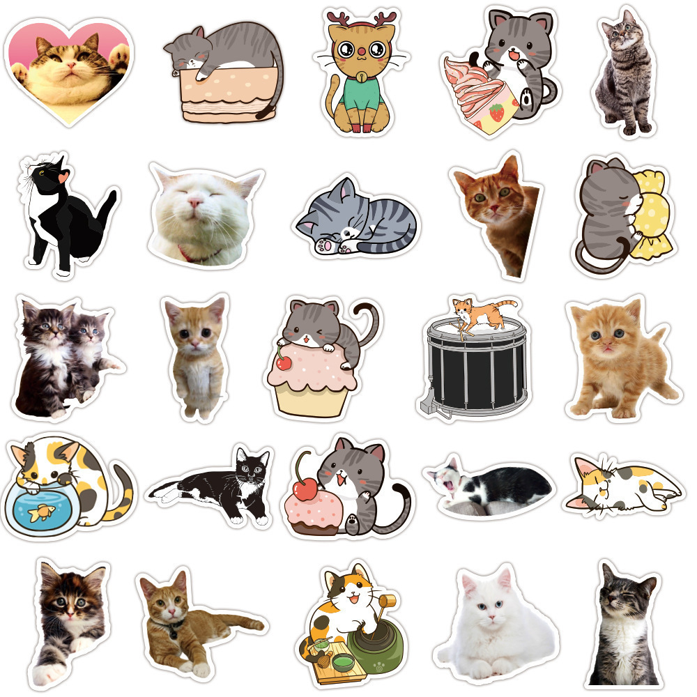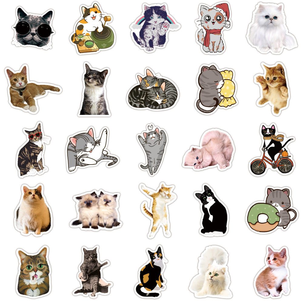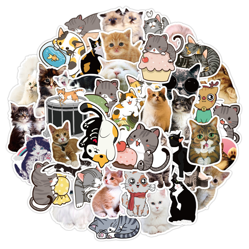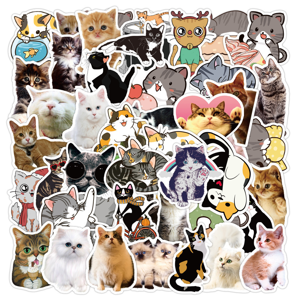 Наклейки Котики / Cats С водостойкие 50шт (4-7см)