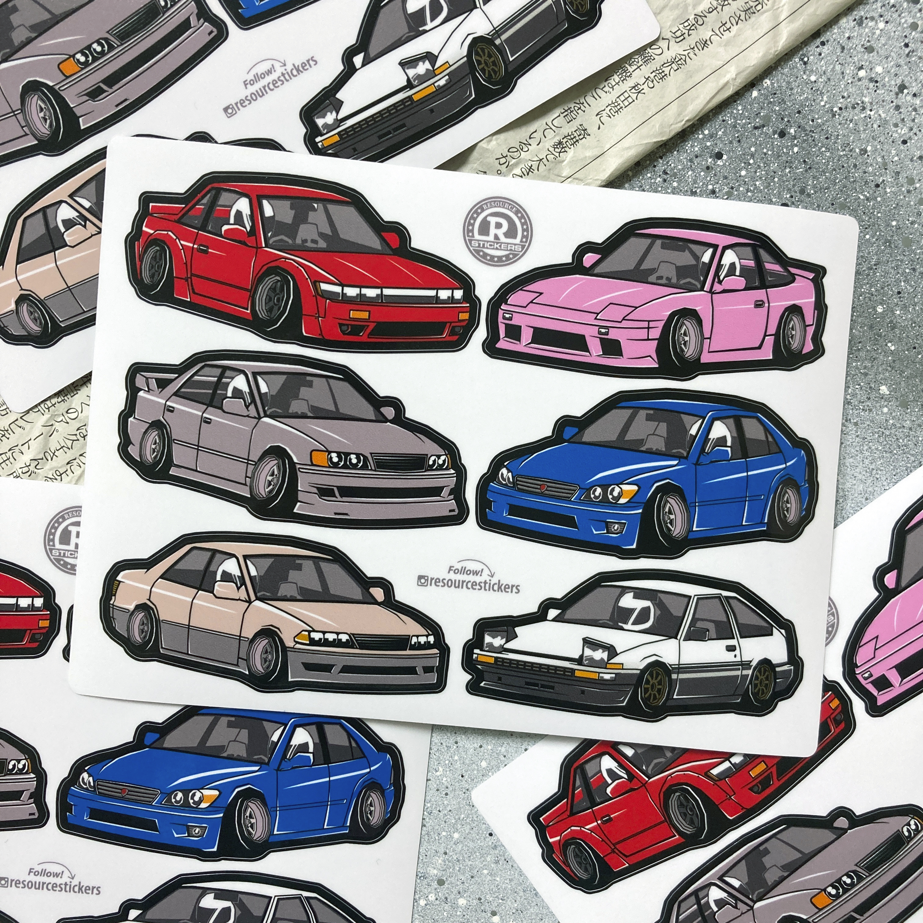 Наклейки японские машинки FR Legends, стикеры JDM, drift