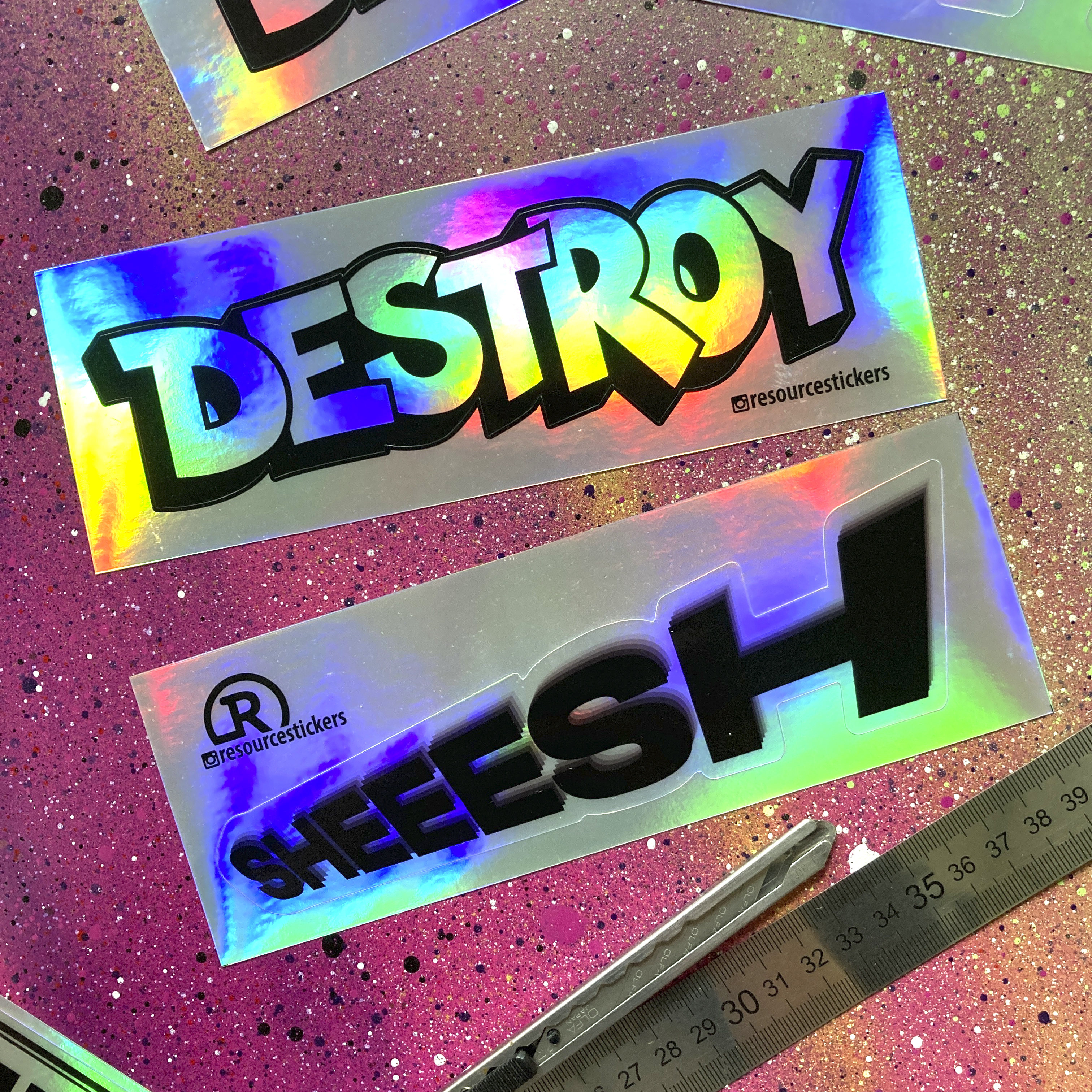 Набор наклеек, граффити, надпись "Sheesh" "Destroy" 2шт