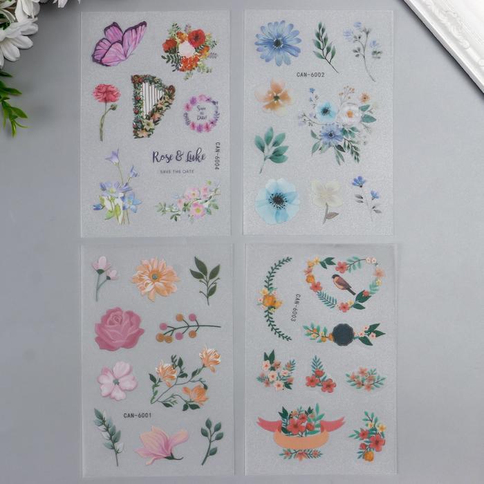 Наклейка бумага "Цветочная" шершавая набор 4 шт 14,5х9,5 см