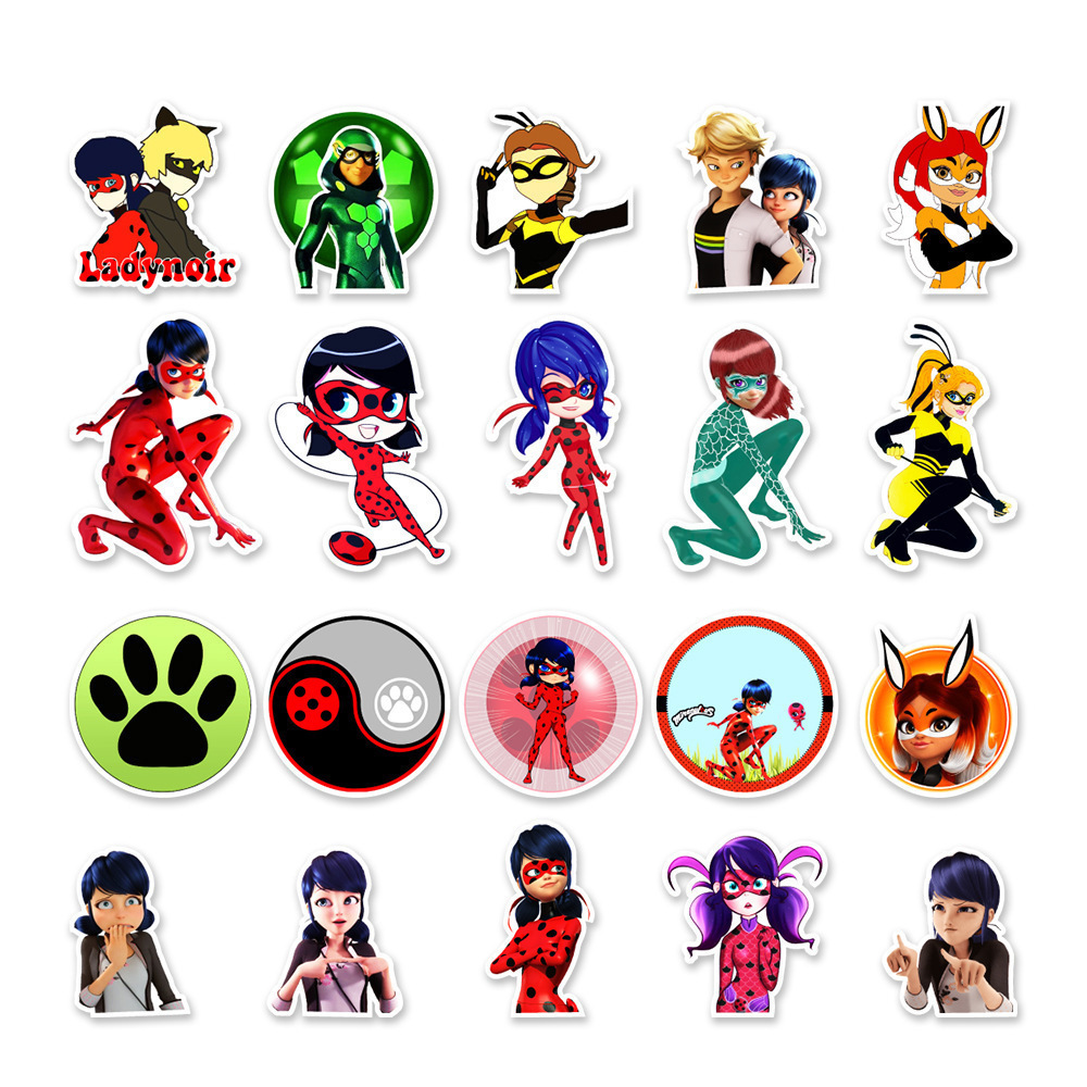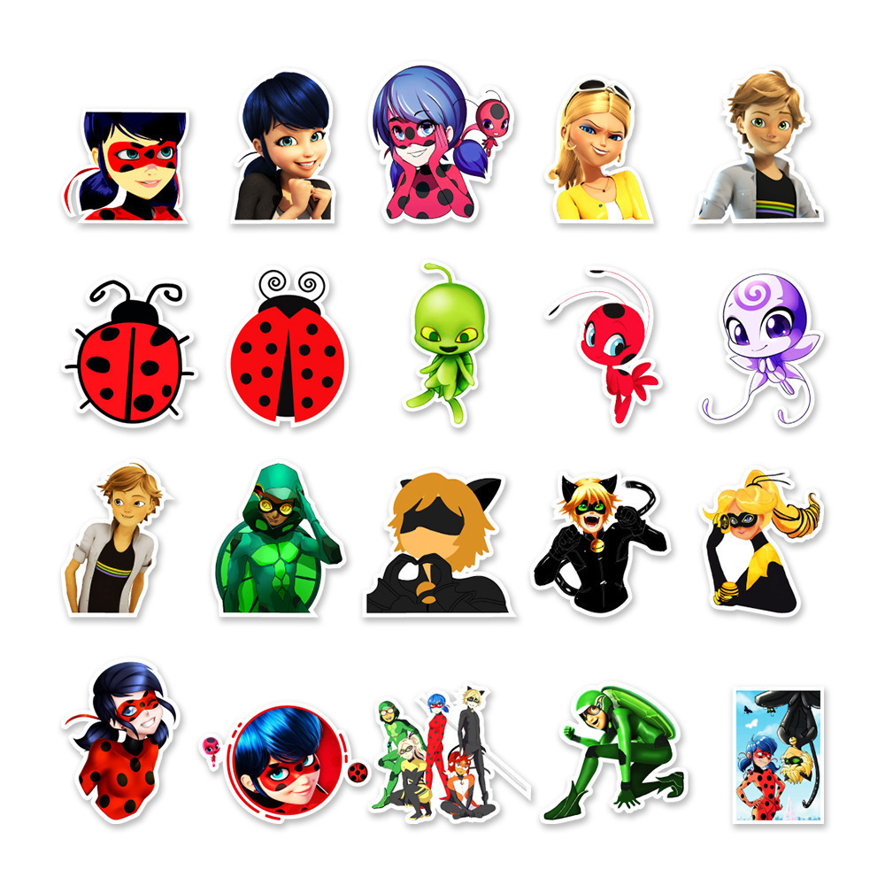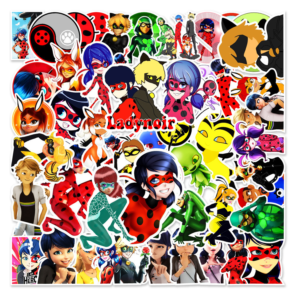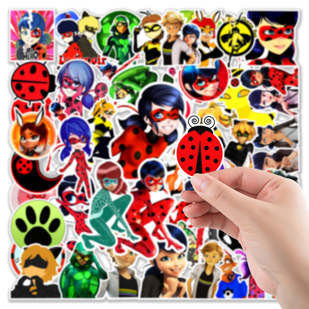 Наклейки Леди Баг и Супер-Кот водостойкие 50шт (4-7см)