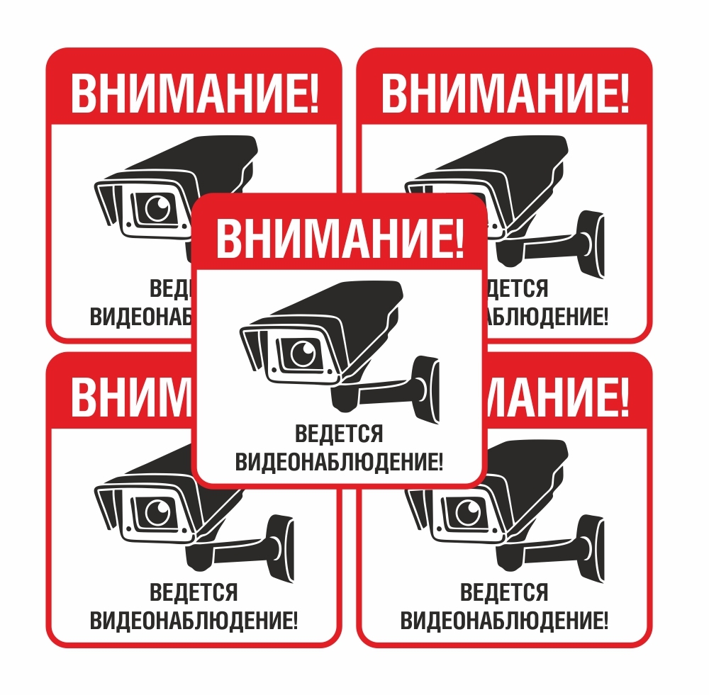 Наклейка "Ведется видеонаблюдение" 100х100 мм (5 шт)