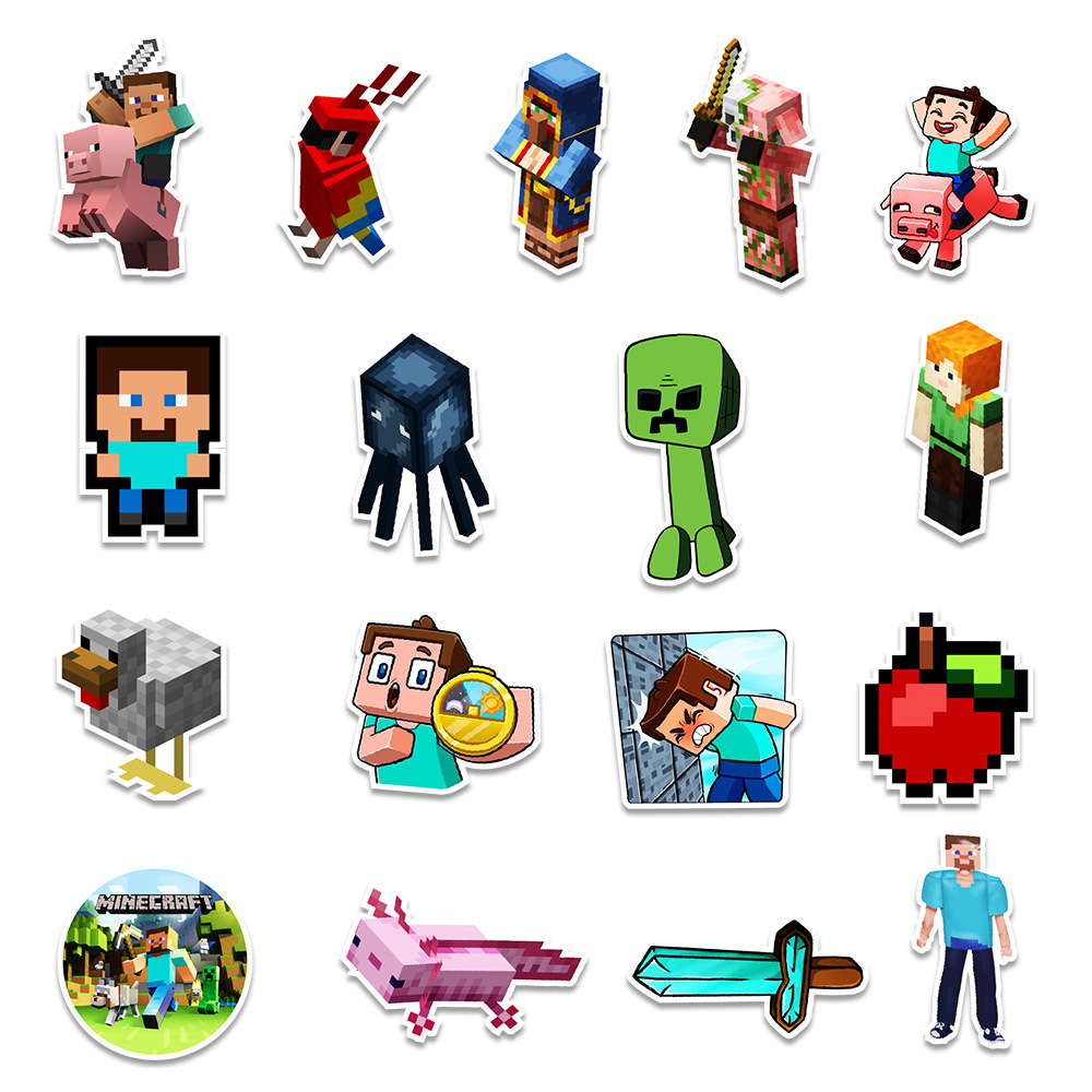 Наклейки Майнкрафт А водостойкие 50шт (3-6 см)
