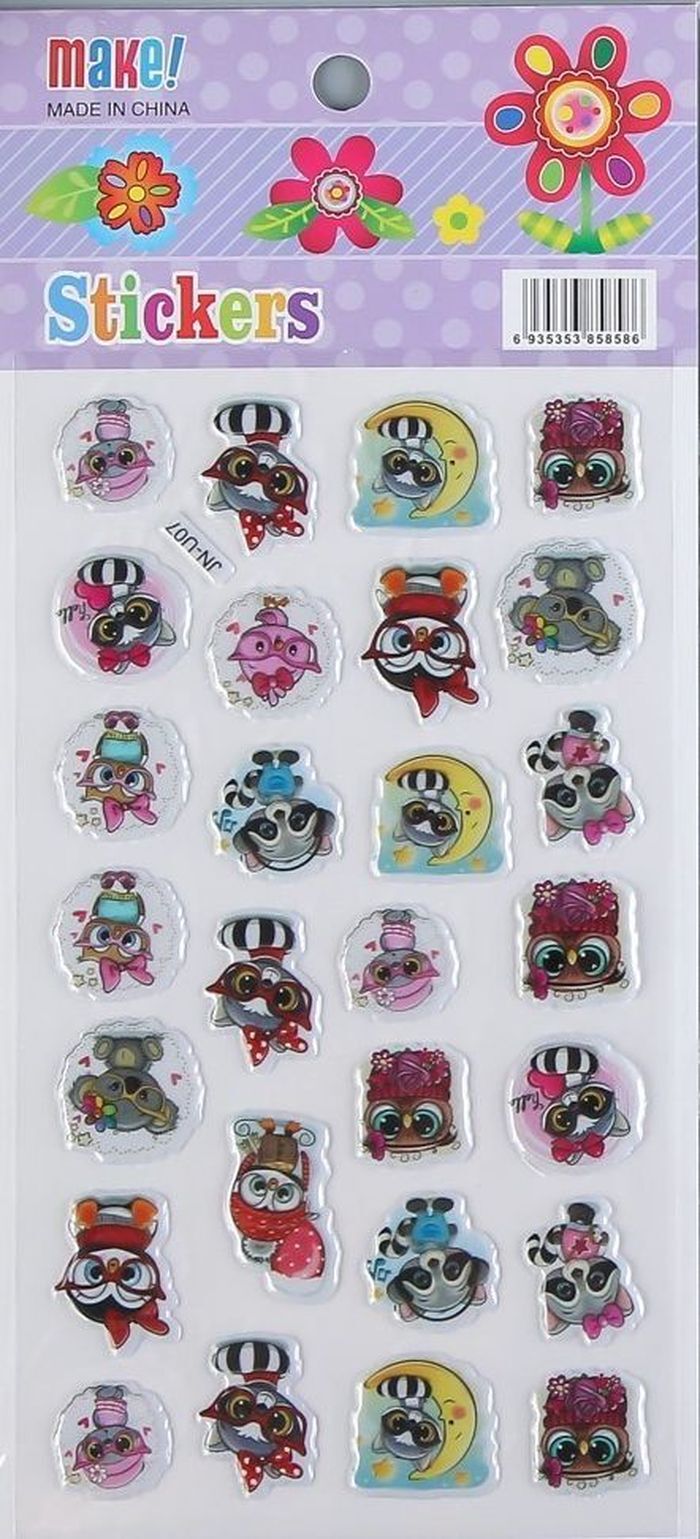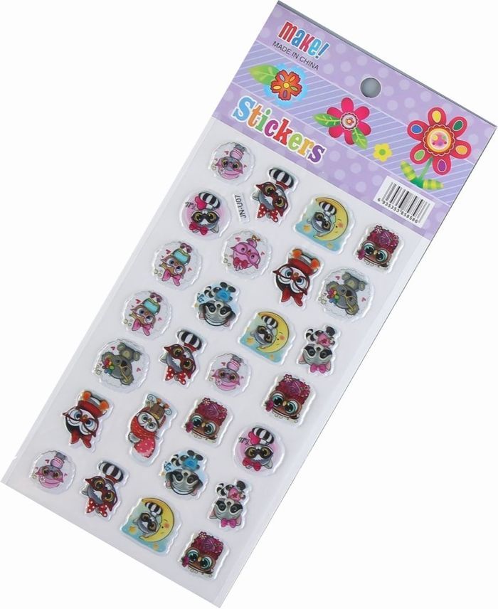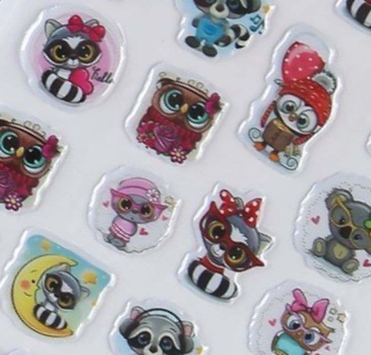 Наклейки пластик выпуклые "Еноты-енотики" 27 наклеек, стикер, 21*9,5 см