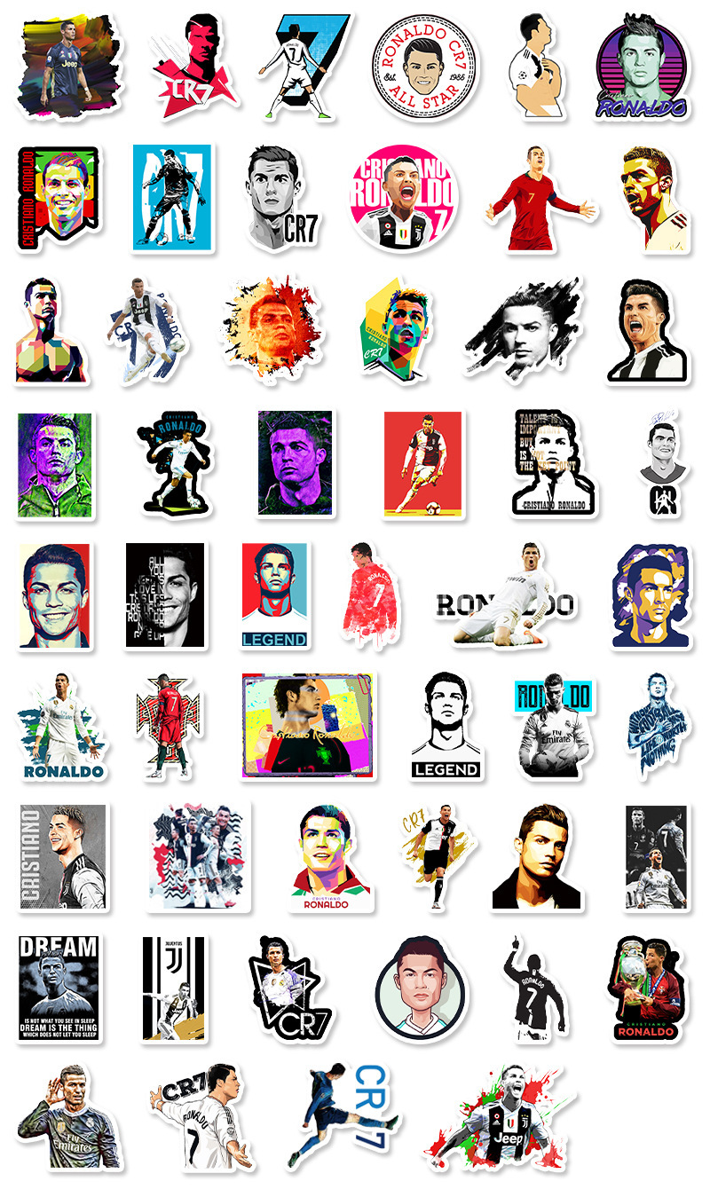 Наклейки Криштиану Роналду / Ronaldo водостойкие 52шт (4-7см)